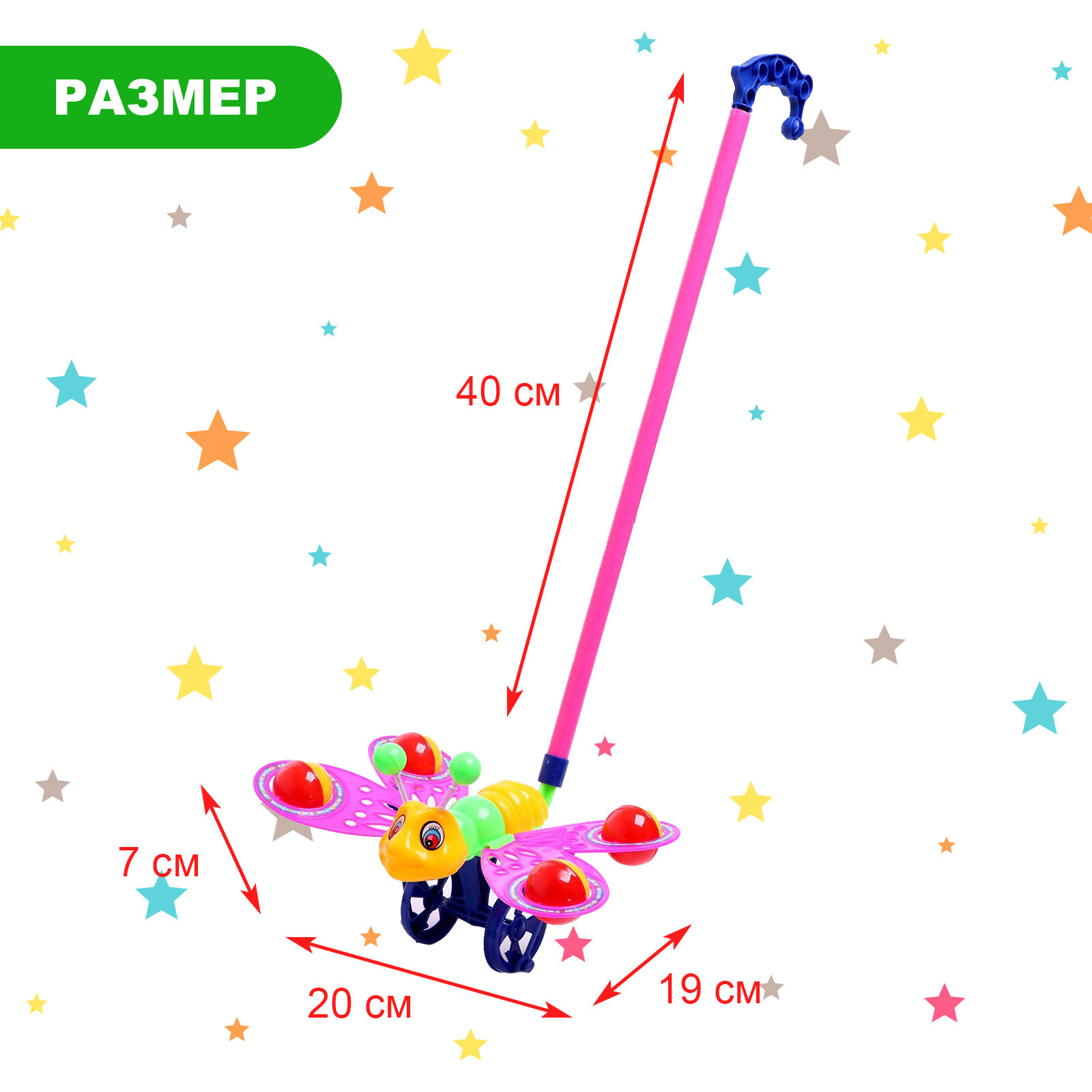 Купить Каталка на палочке "Бабочка", цвета микс