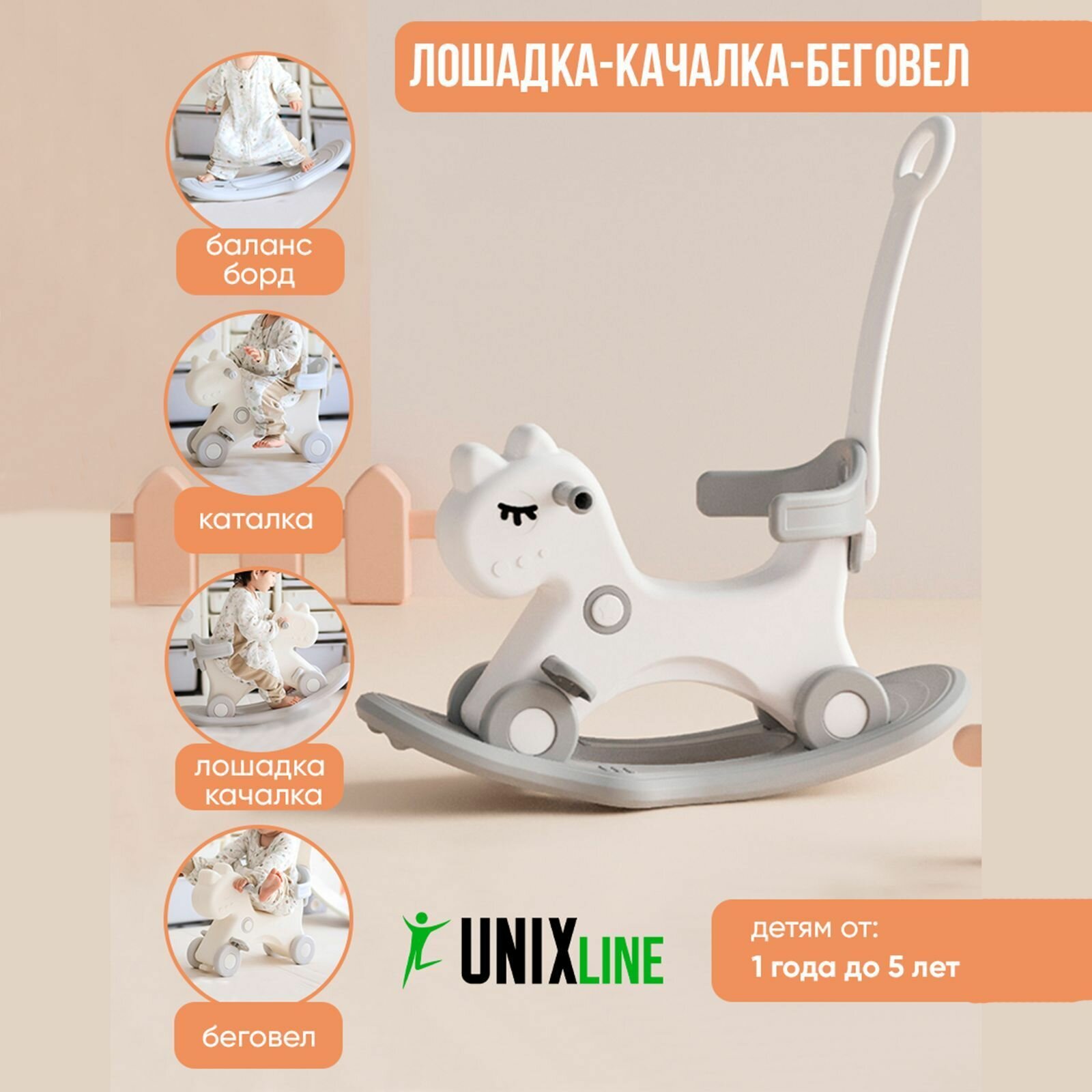Лошадка-качалка-беговел UNIX Kids Grey (с ручкой)