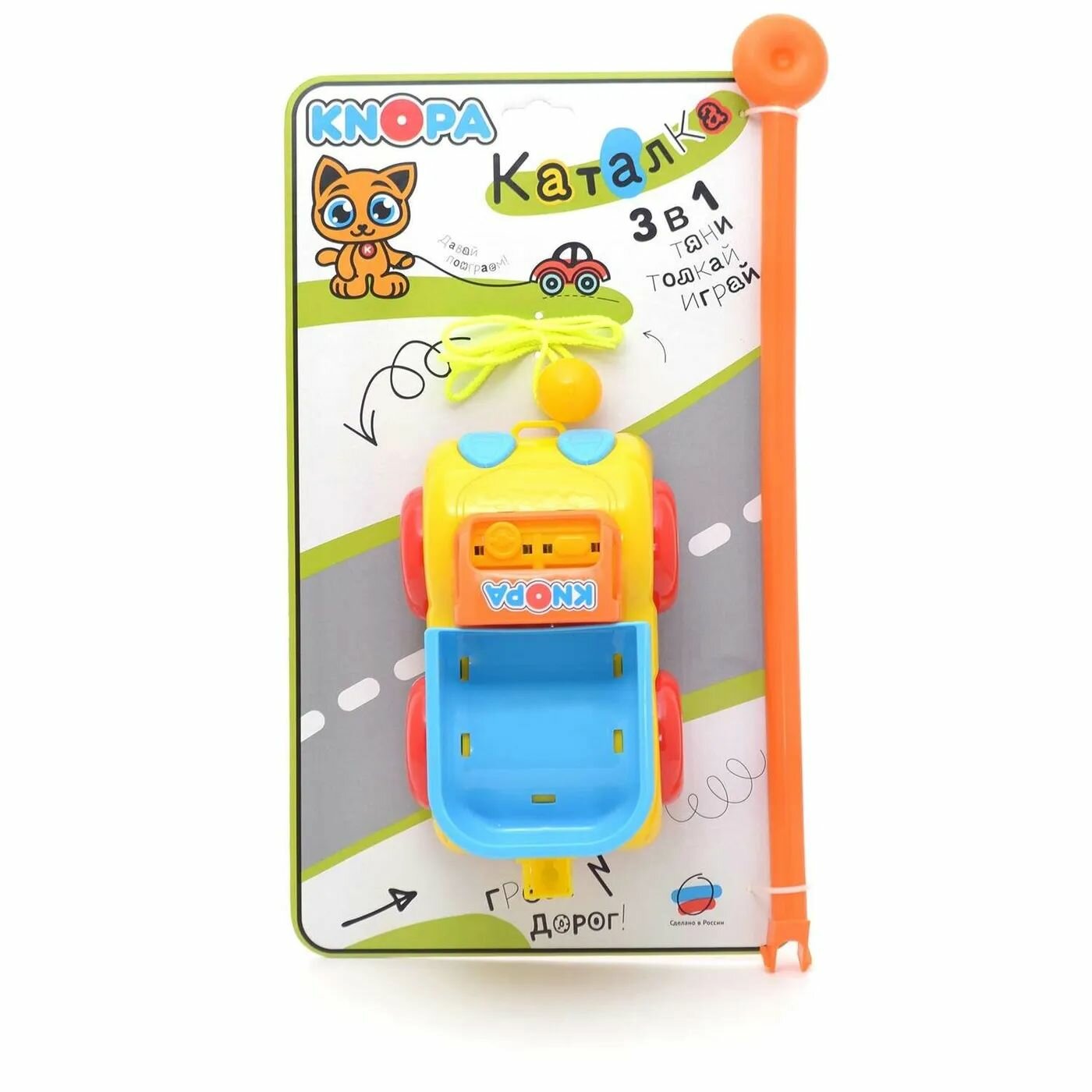 | Комплектация | машинка-грузовик, ручка, веревочка |