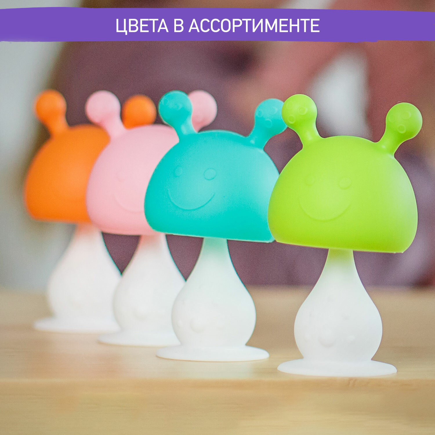 Силиконовый прорезыватель "Грибочек" с держателем, в футляре, цвет салатовый