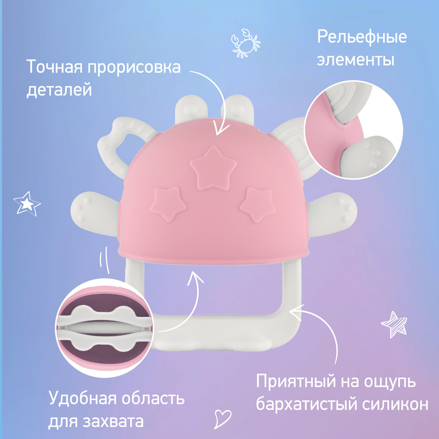 Грызунок прорезыватель для зубов от ROXY-KIDS на руку силиконовый цвет розовый интересное: