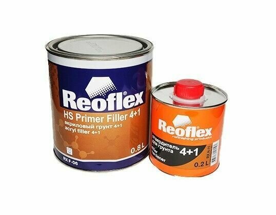 комплект REOFLEX Акриловый грунт Filler Prime HS 4+1 RX F-06 0,8л Серый + Отвердитель для грунта 4+1 RX H-11 0,2л