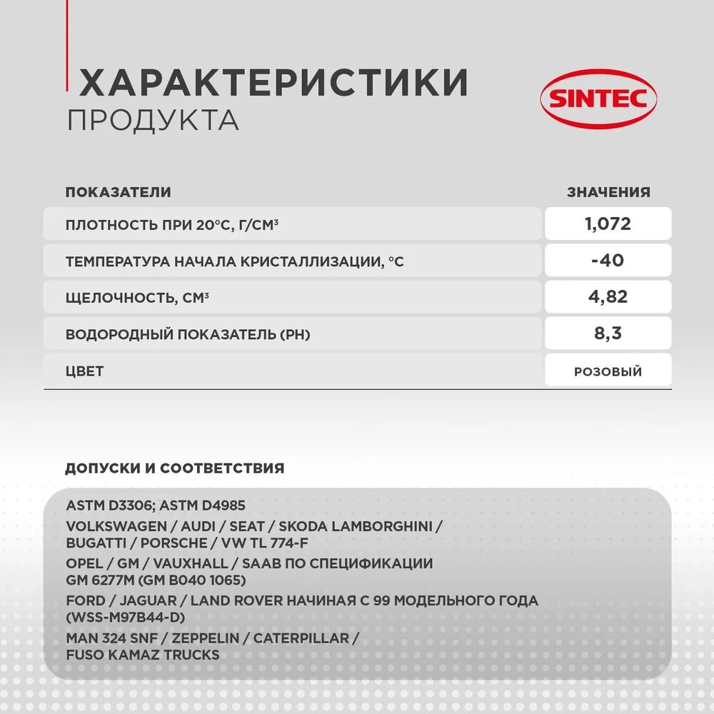 Антифриз, Sintec, 990563, Premium, розовый, G12+, -40, 1 л. интересное: