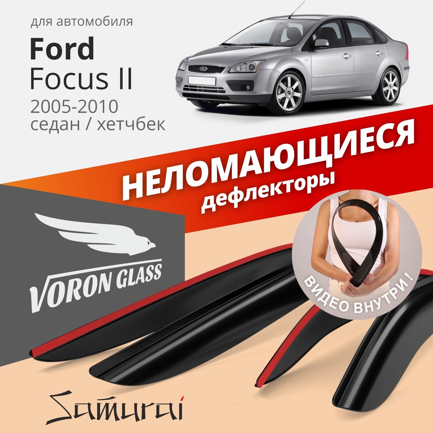 Дефлекторы окон /ветровики/ неломающиеся Voron Glass серия Samurai для Ford Focus II 2005-2010 седан хэтчбек накладные 4шт