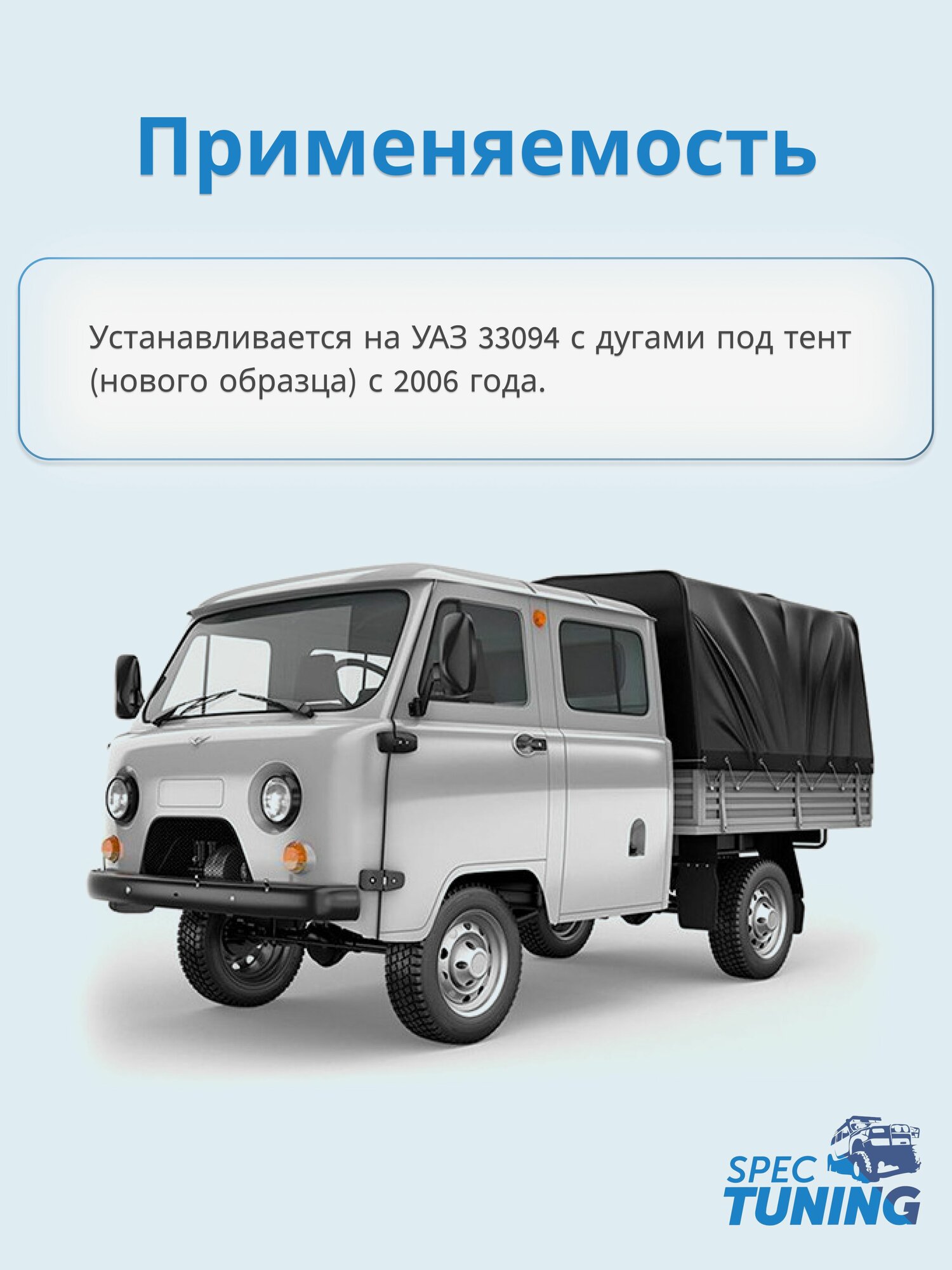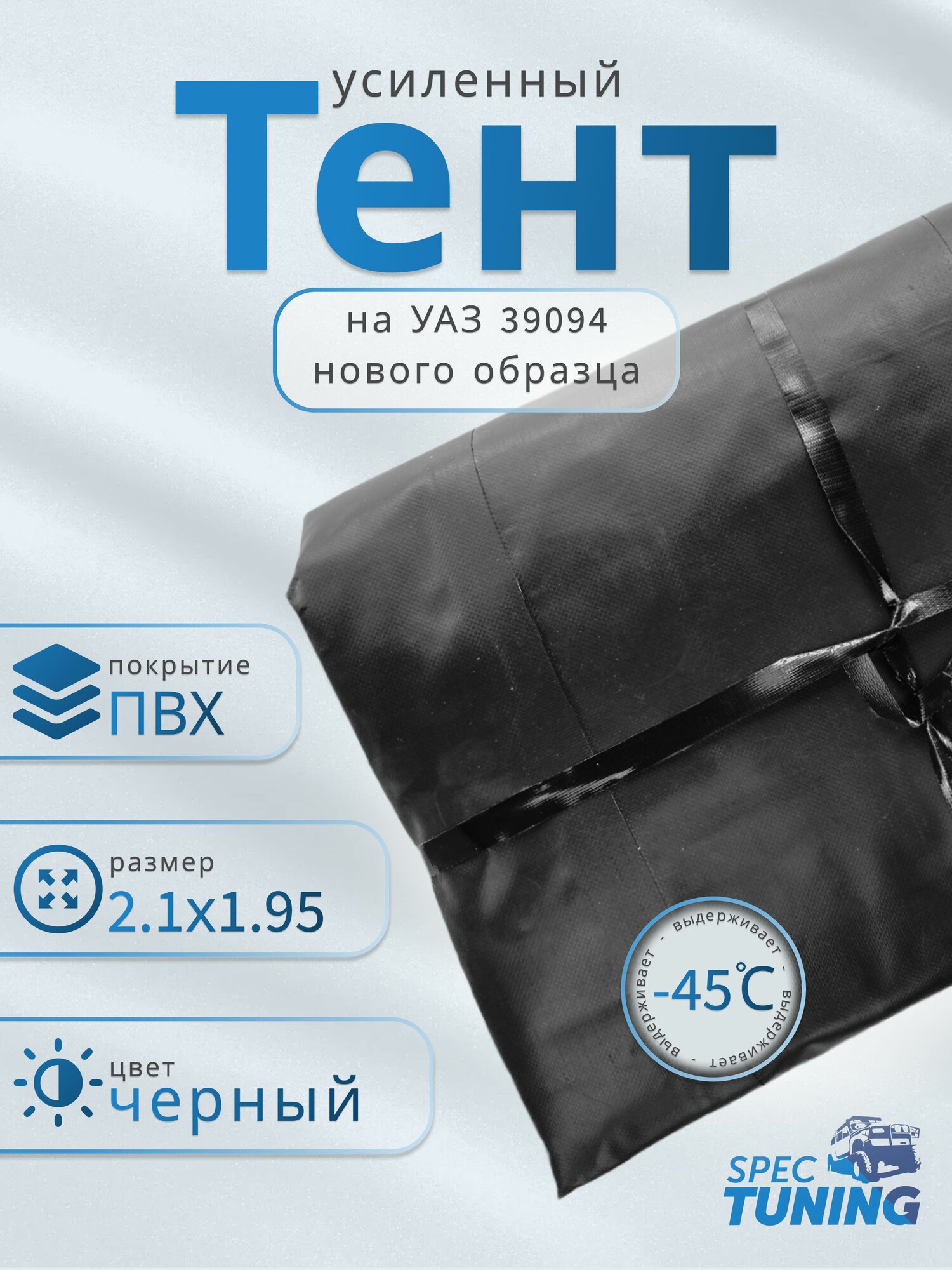 Тент УАЗ 39094 "фермер" (2100*1920*1080) с 2006 г.в. нов. обр. (Евростандарт) черный (1-сторон.) интересное: