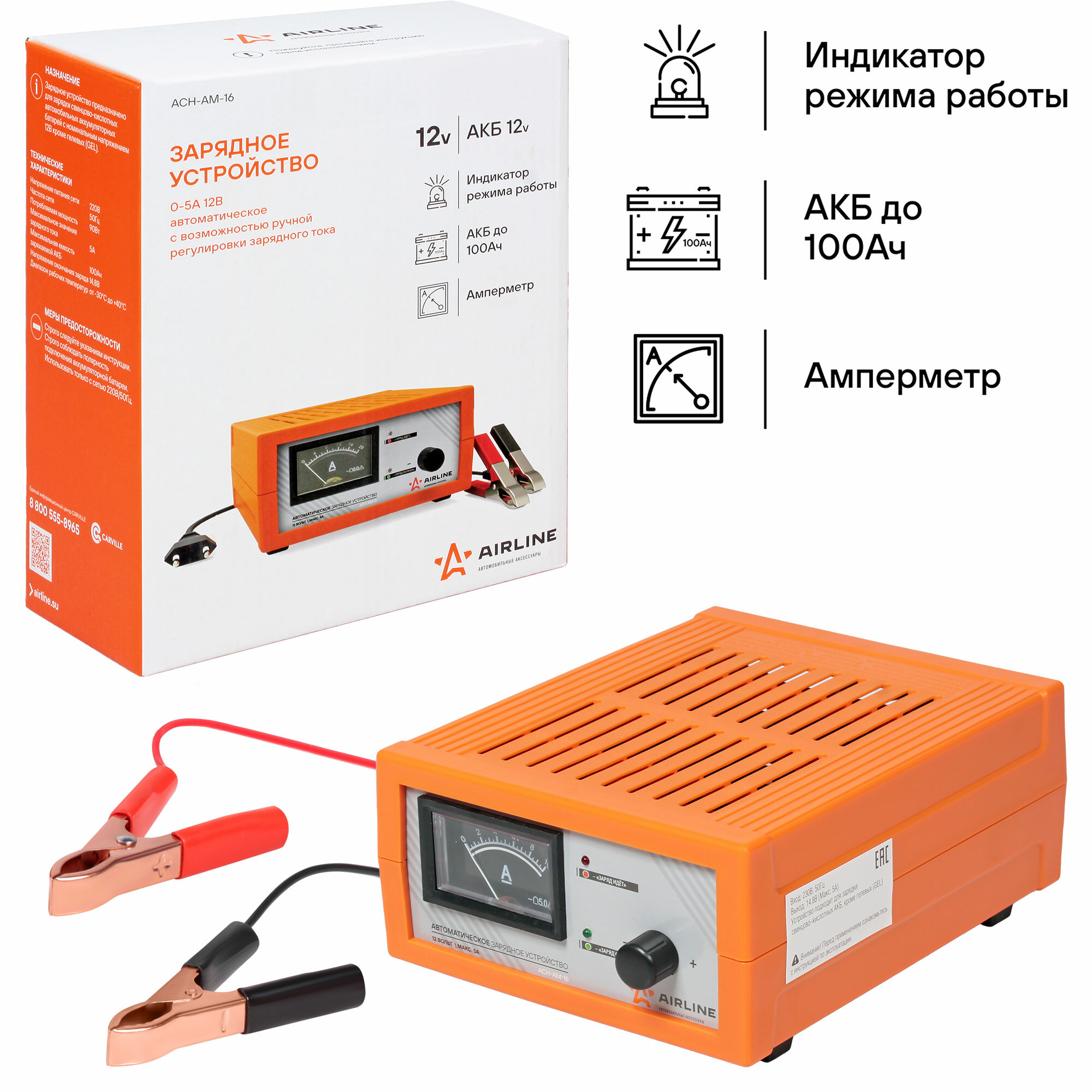 Зарядное устройство 0-5А 12В импульсное, амперметр, ручная регулировка ACH-AM-16 AIRLINE интересное: