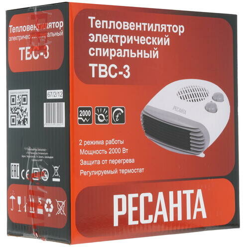 Купить Тепловентилятор Ресанта ТВС-3, 2000Вт, с термостатом, 2 режима, белый [67/2/12]
