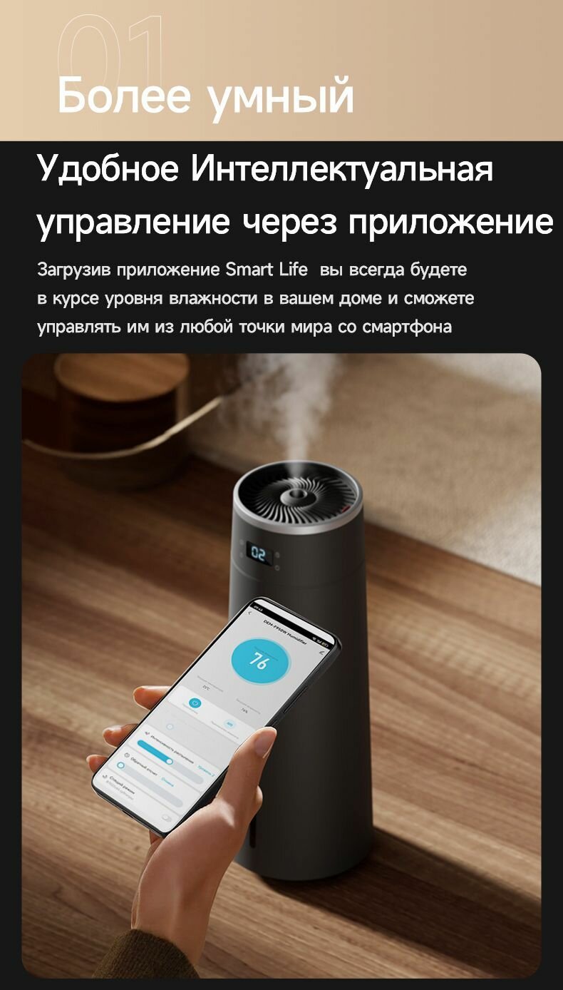 | Особенности | гигростат / дисплей / индикация работы / регулировка скорости вентилятора/интенсивности испарения / таймер / увлажнение воздуха / управление со смартфона |