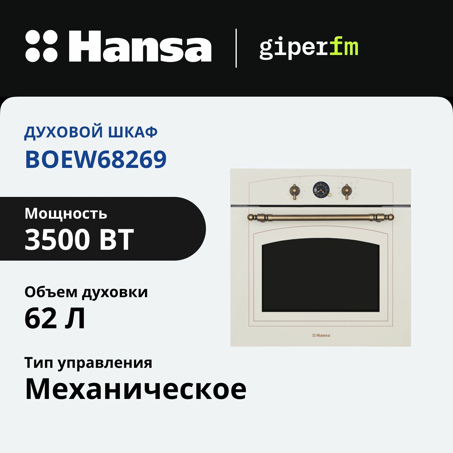 Электрический духовой шкаф Hansa BOEW68269, встраиваемый, 60 см, 62 л, 9 режимов, с таймером, конвекцией, грилем, быстрым нагревом, цвета слоновой кости
