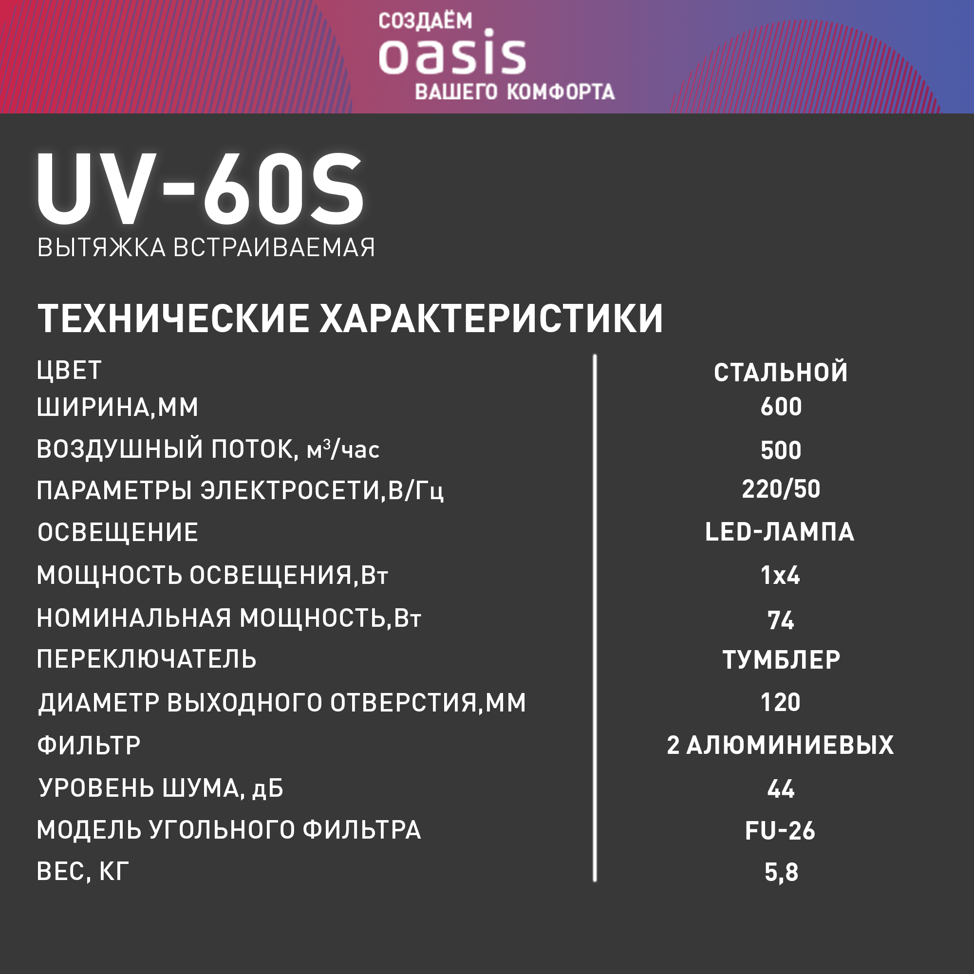 Встраиваемая вытяжа OASIS UV-60S (F) (4640039481515) нержавеющая сталь