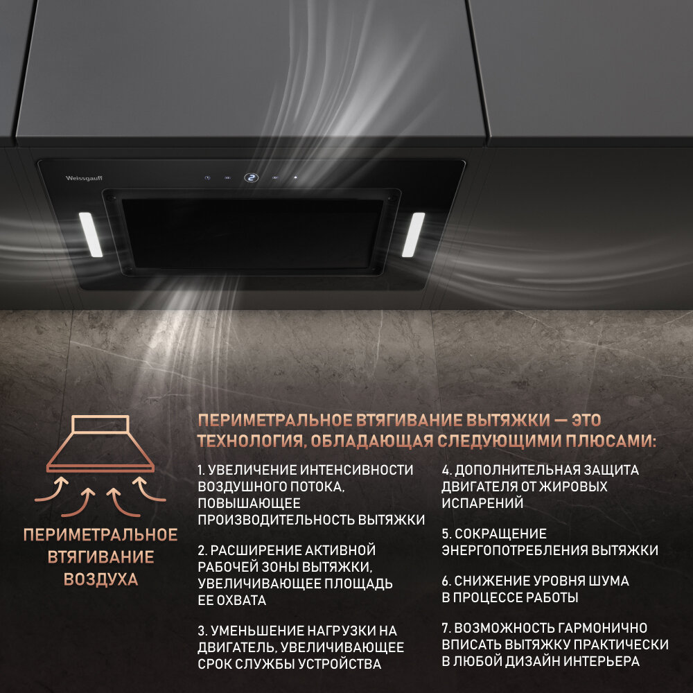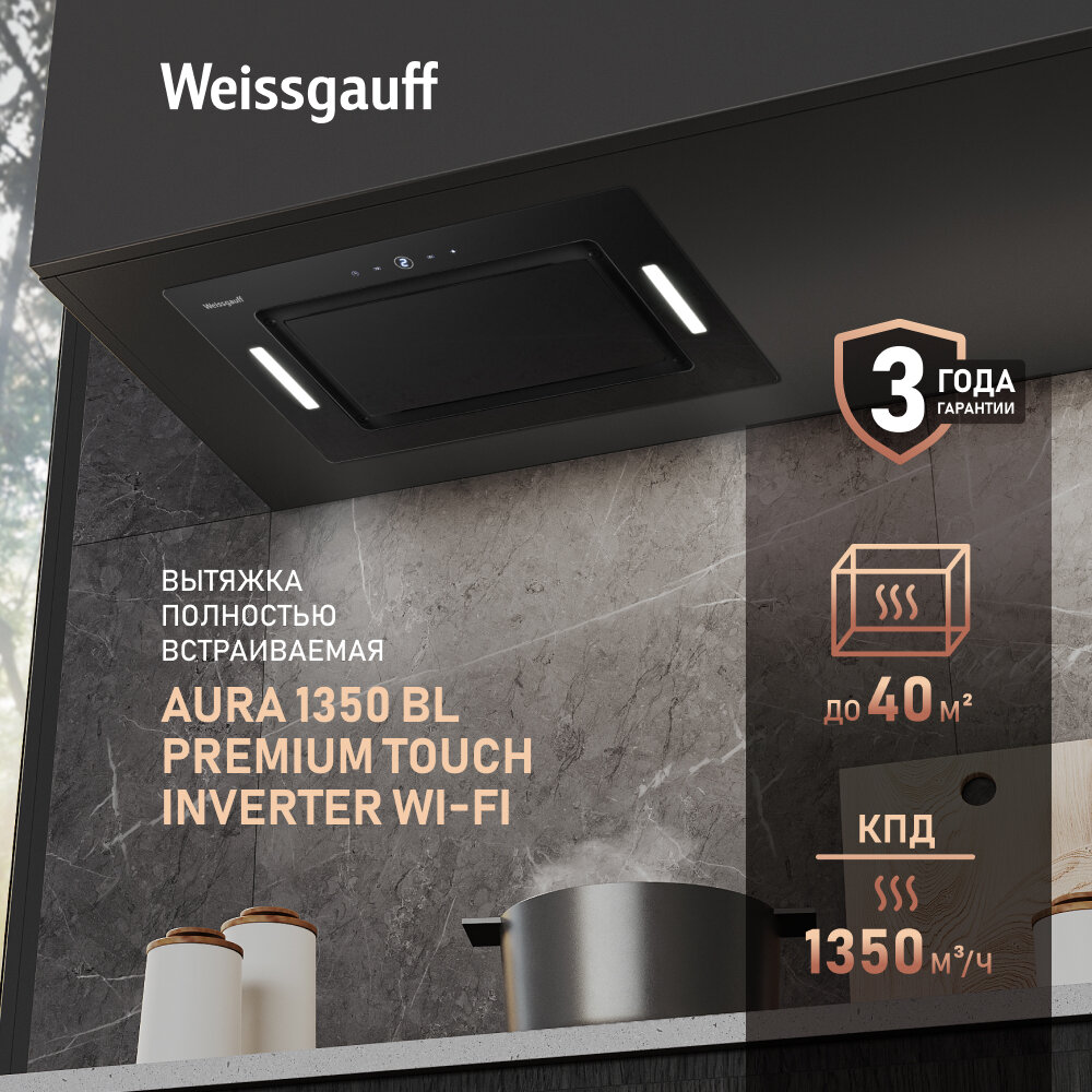 Кухонная встраиваемая вытяжка с Wi-Fi и инвертором Weissgauff Aura 1350 BL Premium Touch Inverter Wi-Fi