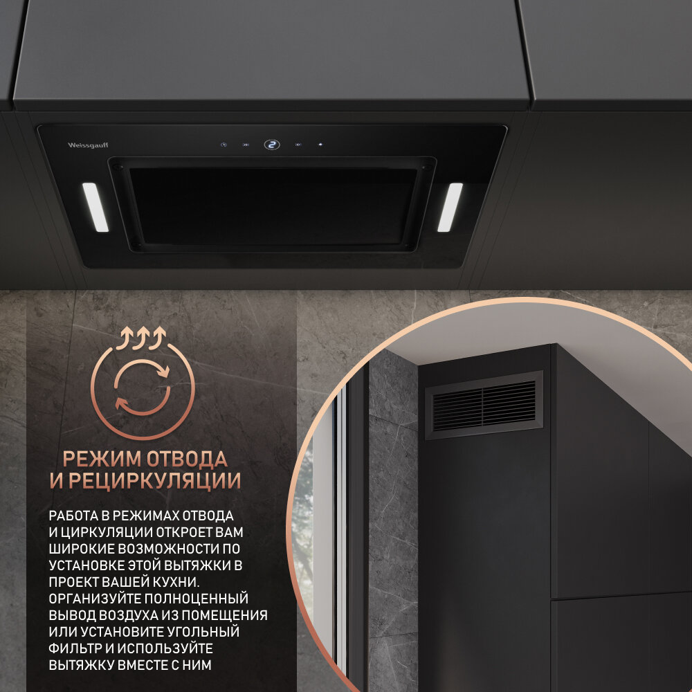 Вытяжка встраиваемая Weissgauff Aura 1350 BL Premium Touch Inverter Wi-Fi, черный