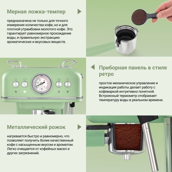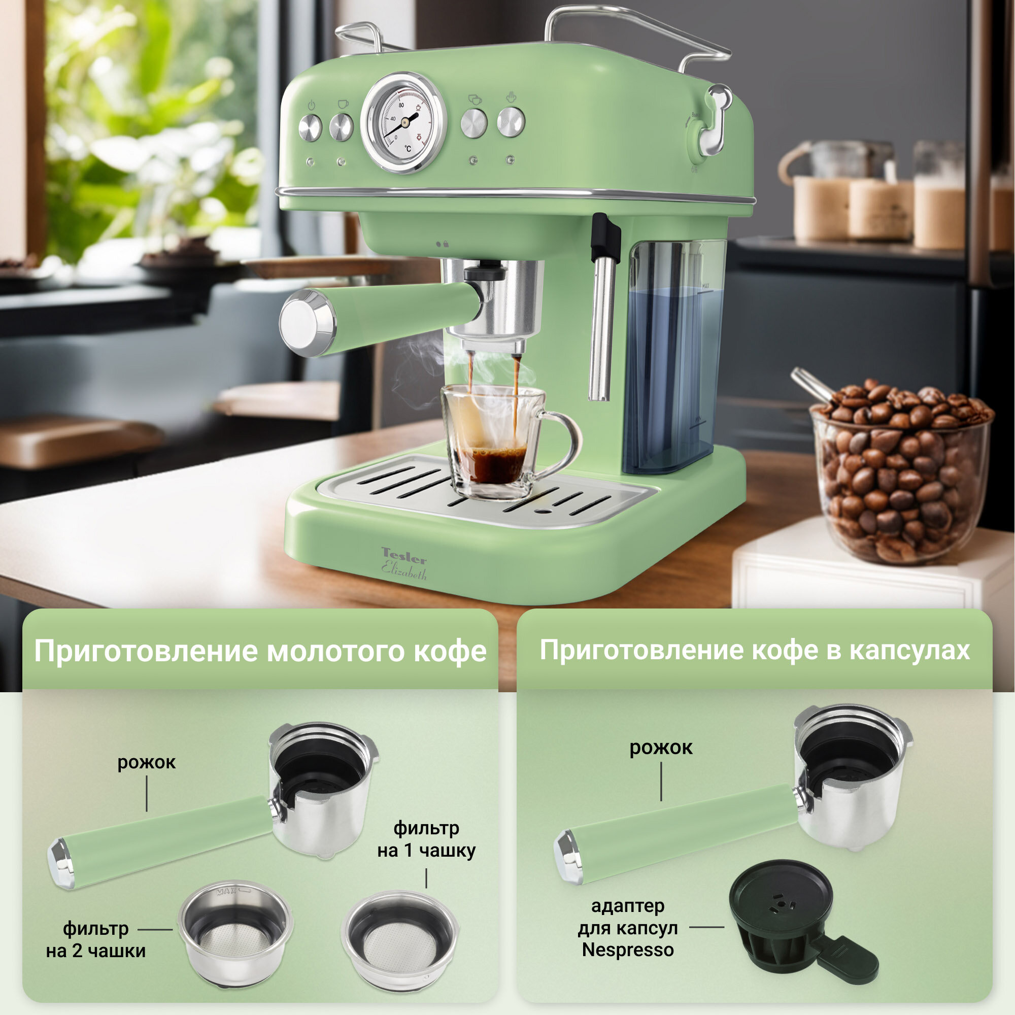 Кофеварка эспрессо TESLER ECM-245 GREEN интересное:
