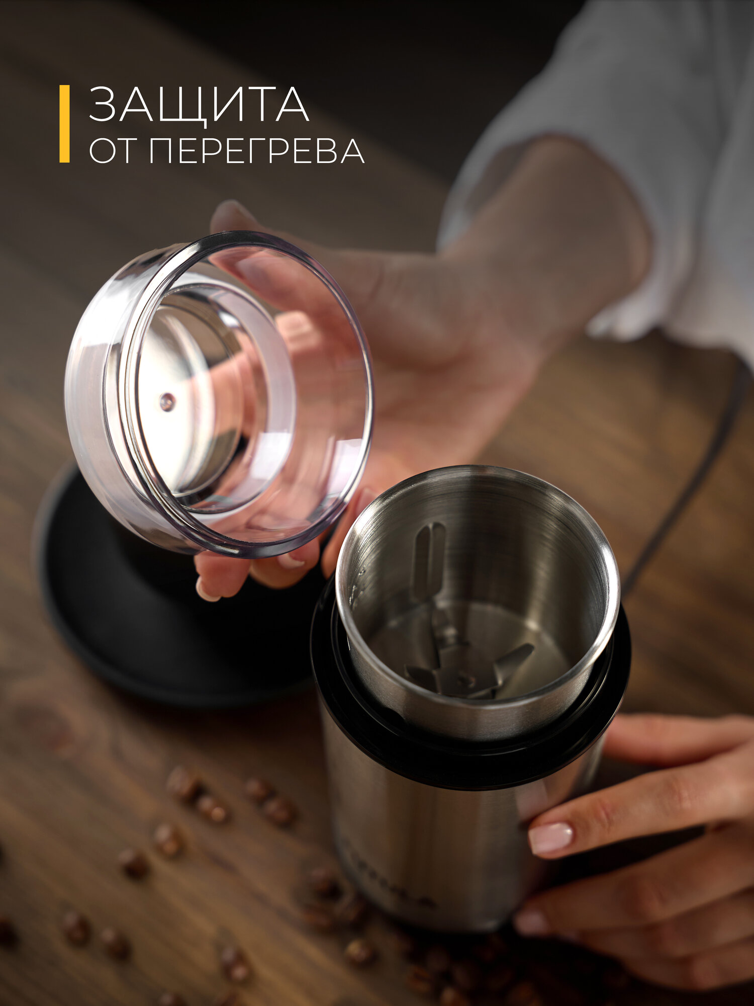 Кофемолка электрическая Futula CG6 серый металлик / измельчитель для кофейных зерен, круп, специй и орехов, 500 Вт со съемной чашей