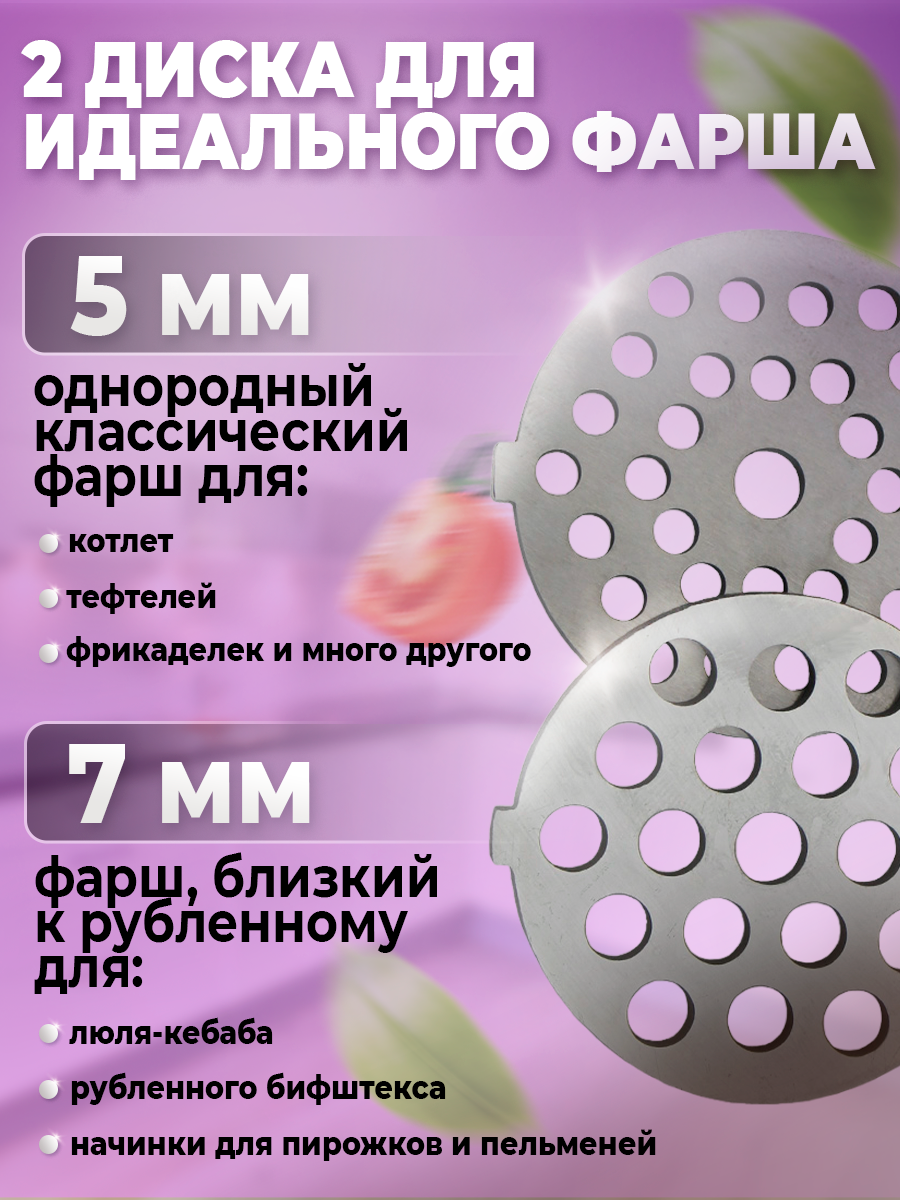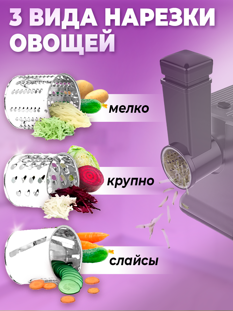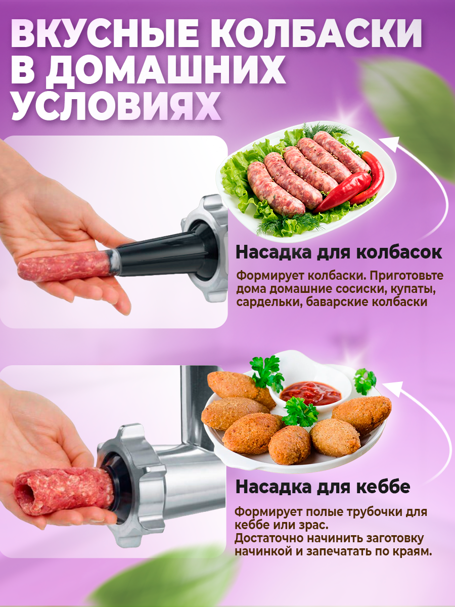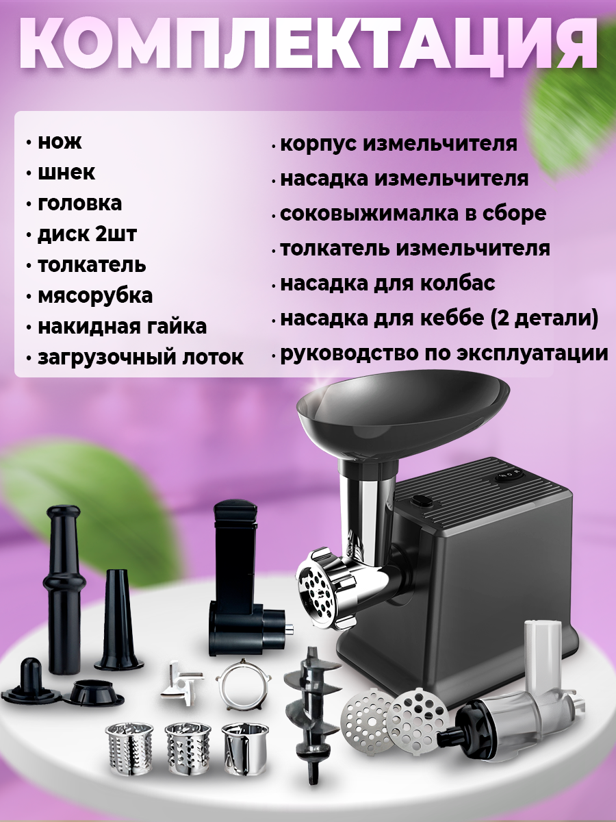 | Насадки | диск для фарша / насадка для кеббе / насадка для приготовления колбас / насадка для шинковки / насадка-терка |