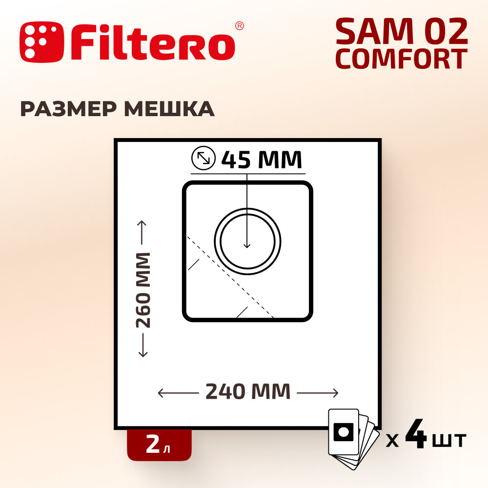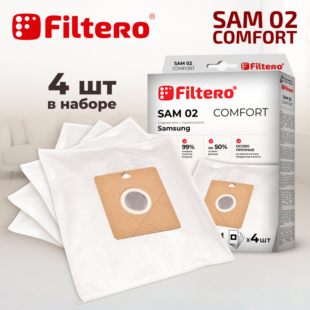 Мешки-пылесборники Filtero SAM 02 Comfort, для пылесосов SAMSUNG, синтетические, 4 штуки