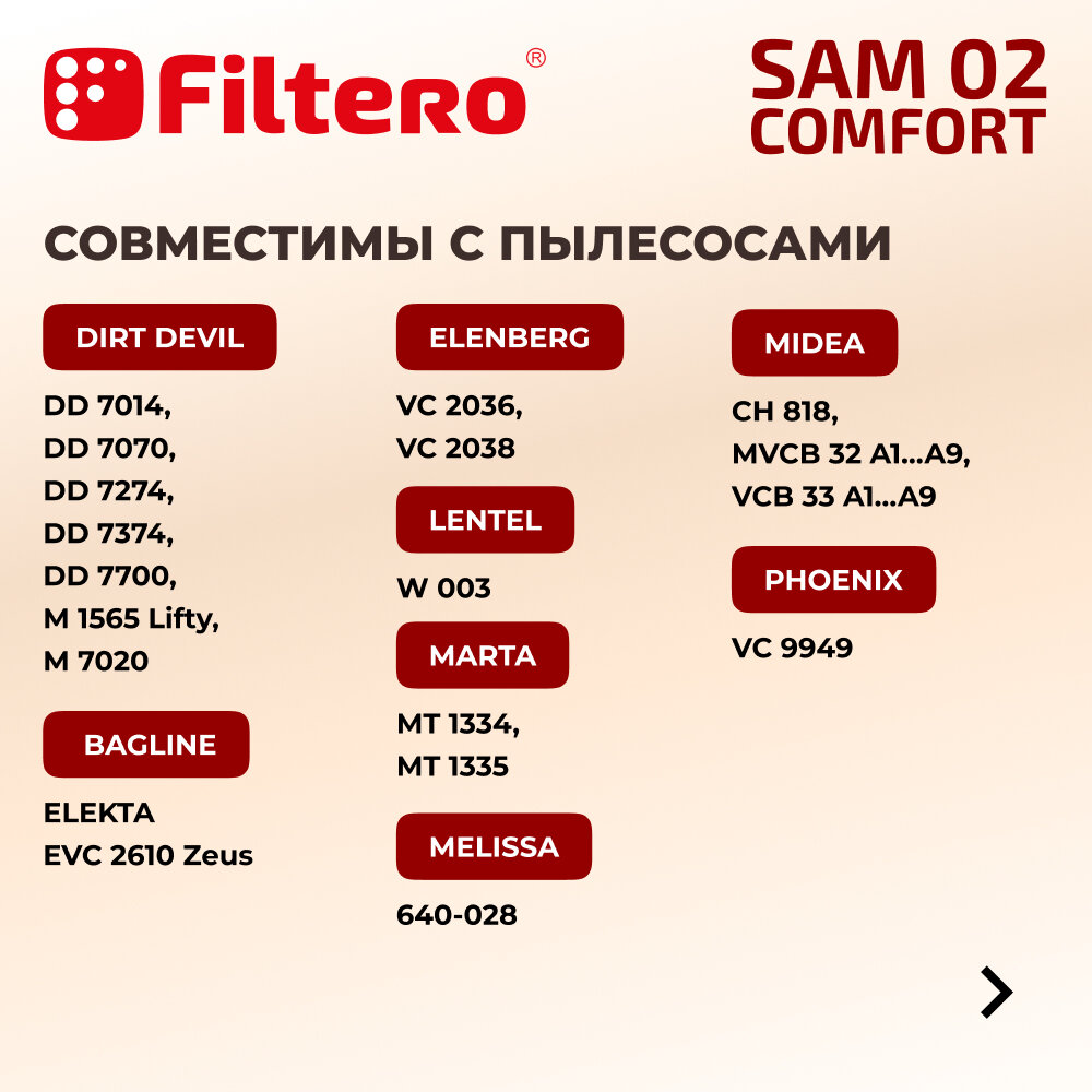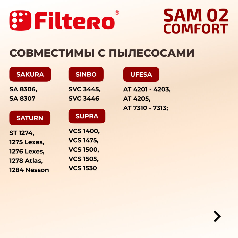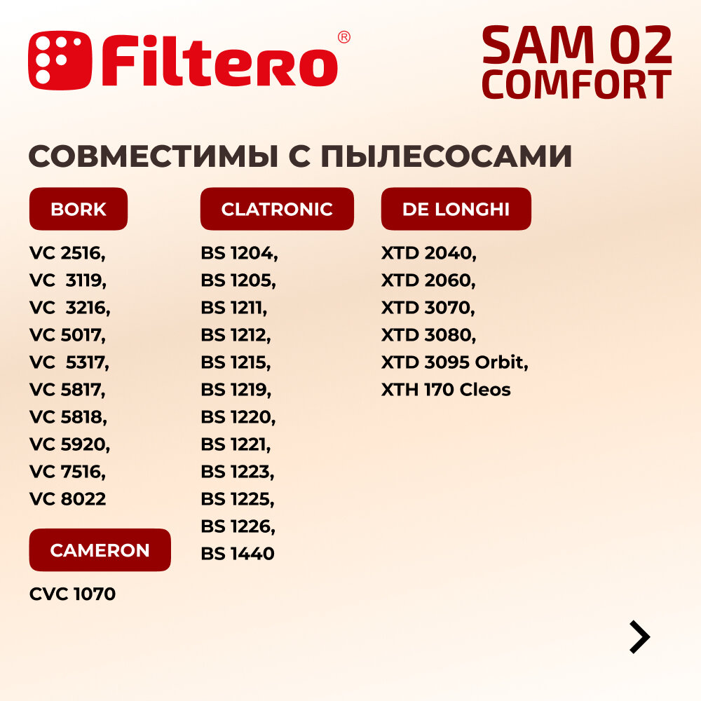 Купить Мешки-пылесборники Filtero SAM 02 Comfort, для пылесосов SAMSUNG, синтетические