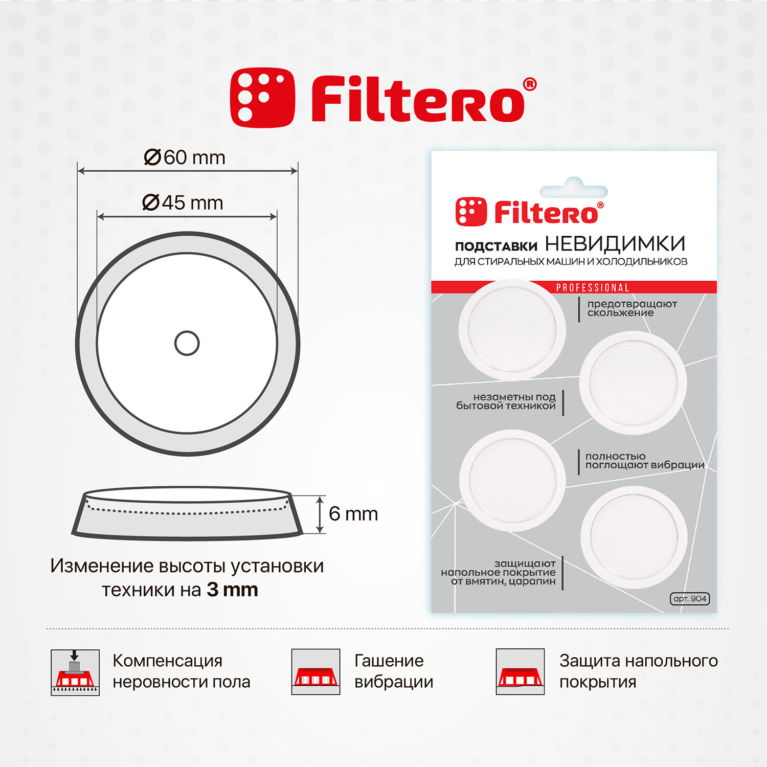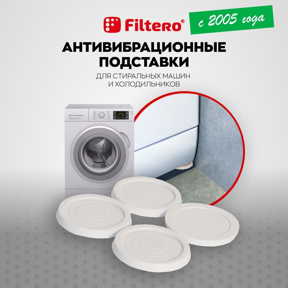 Ультратонкие антивибрационные подставки Filtero для стиральных машин и холодильников, арт.904, круглые интересное: