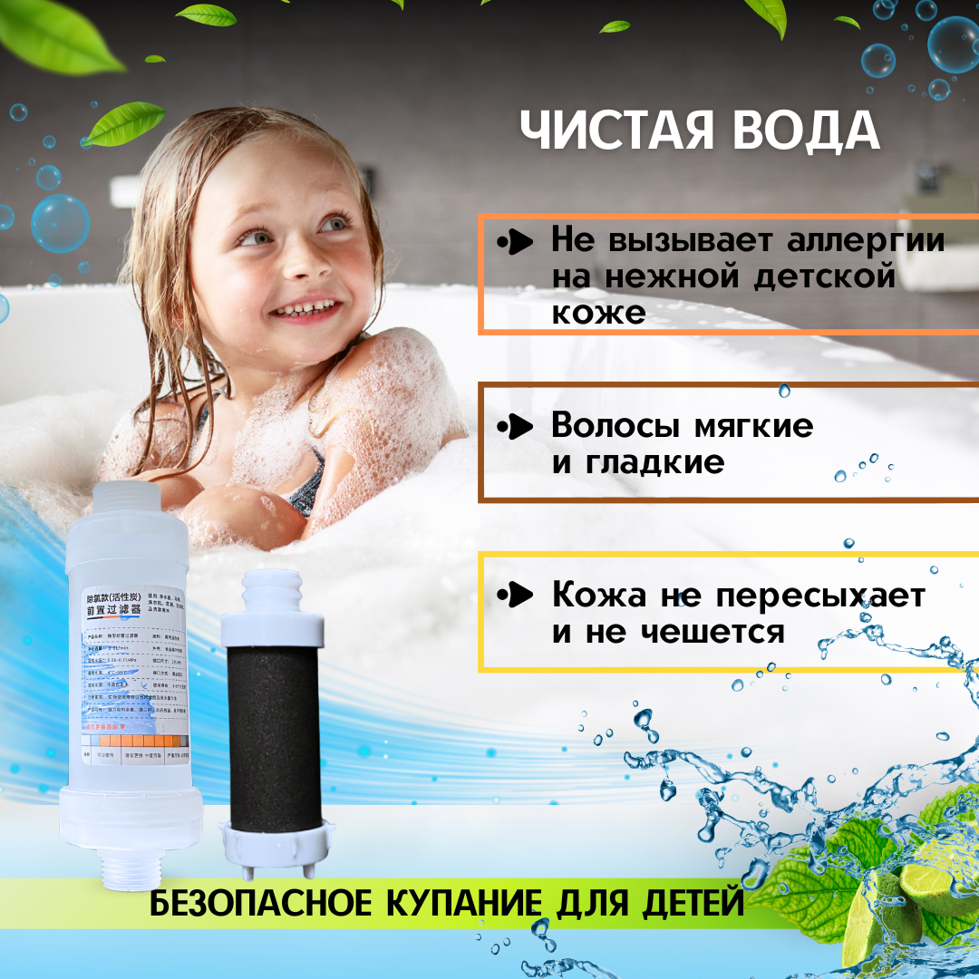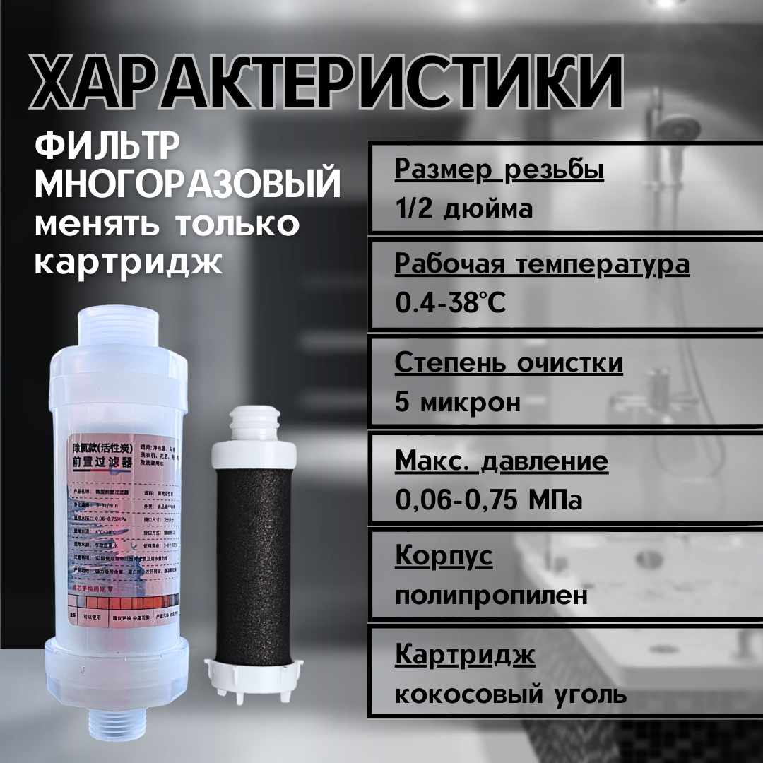 Фильтр для душа / крана, Усиленная очистка воды активированным углем, от хлора и ржавчины интересное: