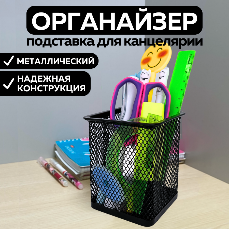 Органайзер подставка для канцелярии, ручек и карандашей настольный, черный