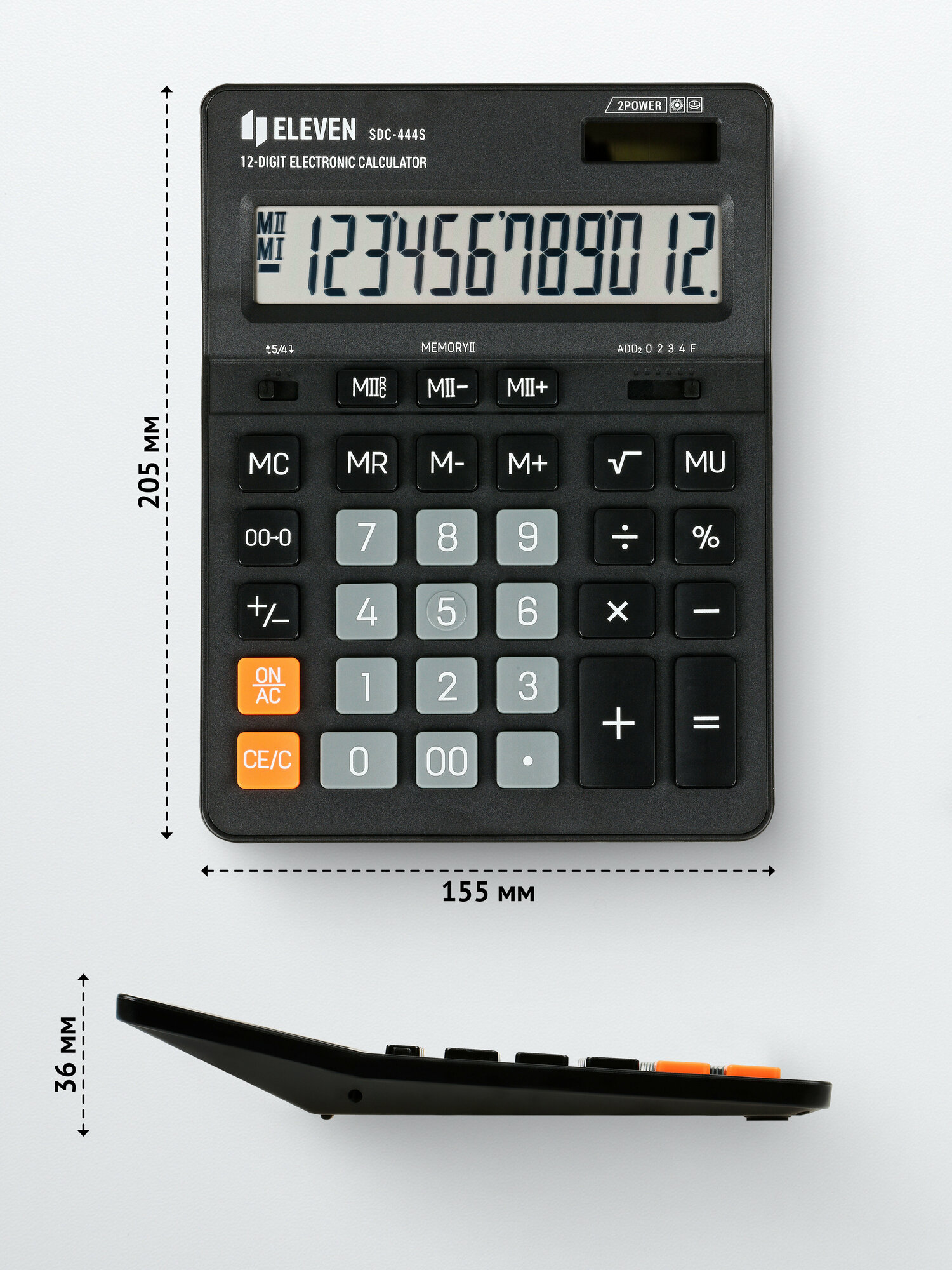 Калькулятор настольный для ЕГЭ непрограммируемый большой для школы Eleven SDC-444S для физики, бухгалтерский / 12 разрядов / черный интересное: