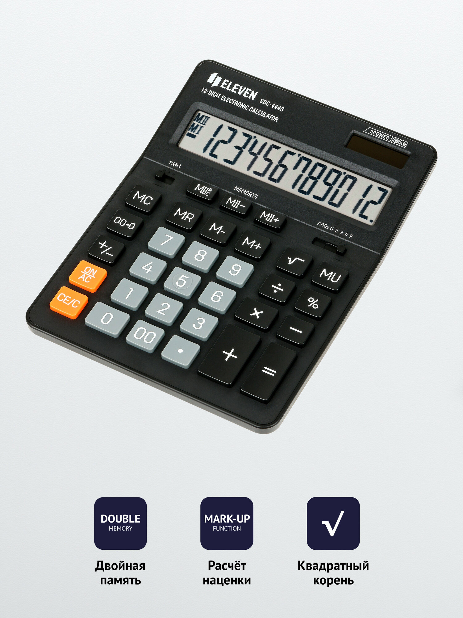 Купить Калькулятор настольный для ЕГЭ непрограммируемый большой для школы Eleven SDC-444S для физики, бухгалтерский / 12 разрядов / черный