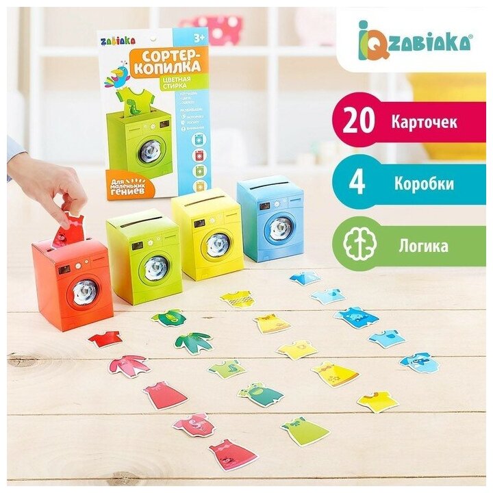 Сортер копилка "Цветная стирка", обучающий набор, 4 сортера, 20 карточек, по методике Монтессори, для детей и малышей малышей интересное: