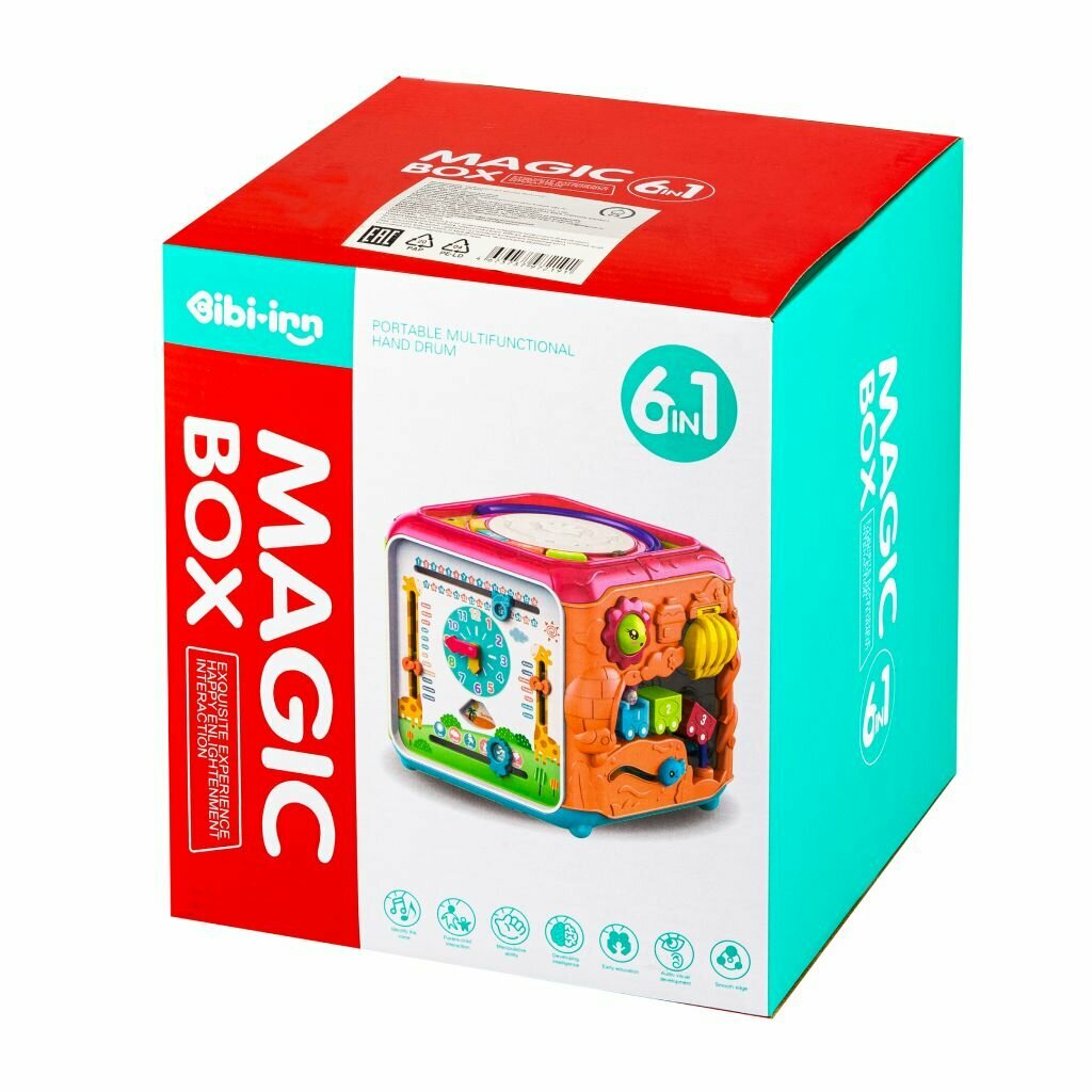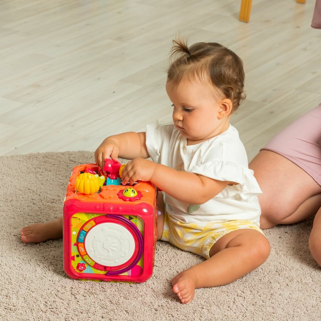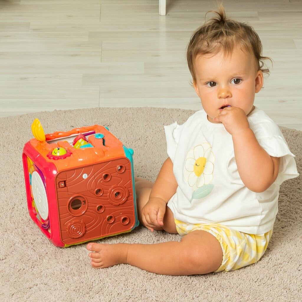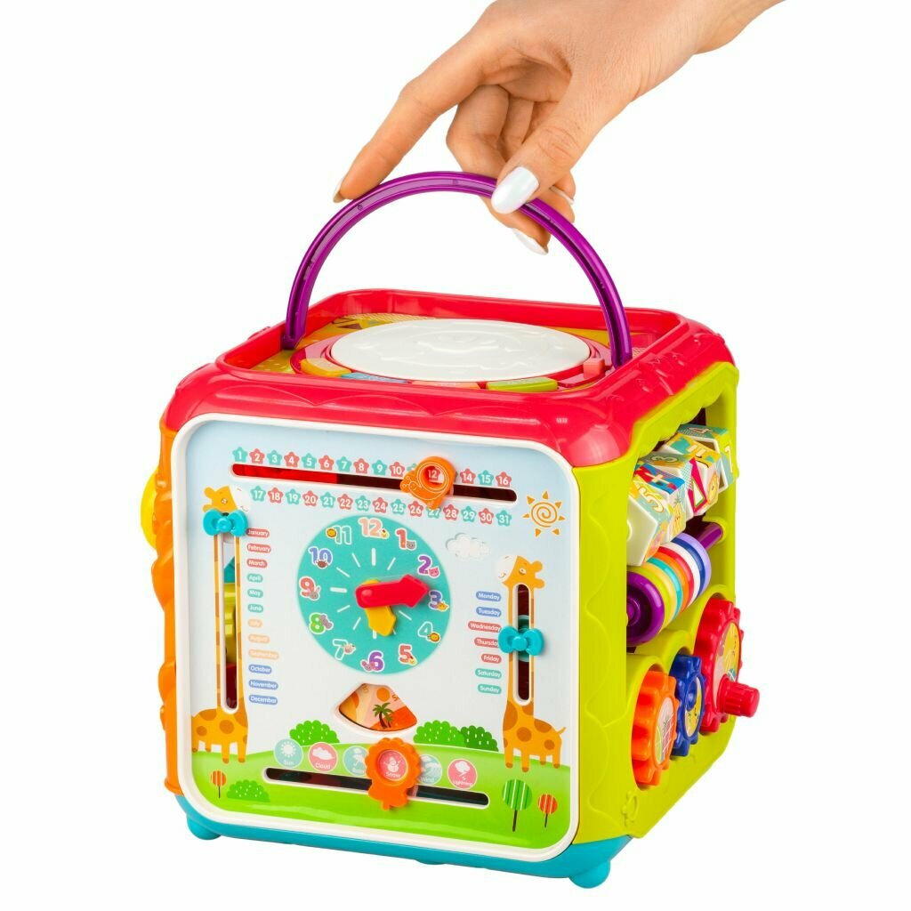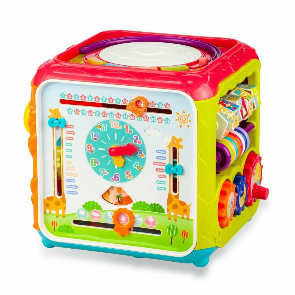 Купить Развивающая игрушка для малышей Solmax "Мультикуб" жирафики, 6в1 игровых зон бизиборда, музыкальные эффекты