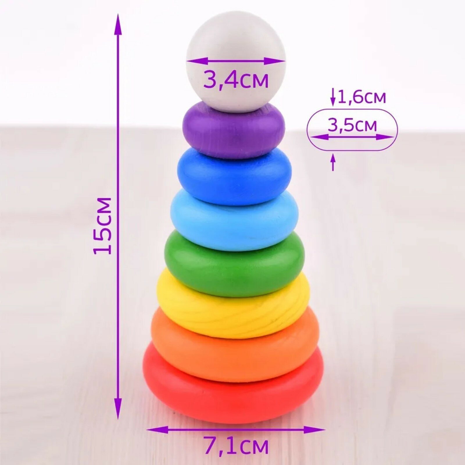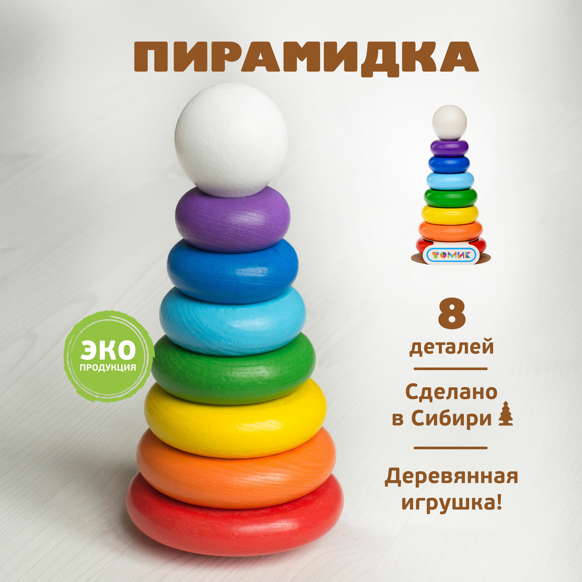 Томик Пирамидка 8 дет. Радуга (дерево, от 3 лет) П-08, (ООО "Томь-Сервис")