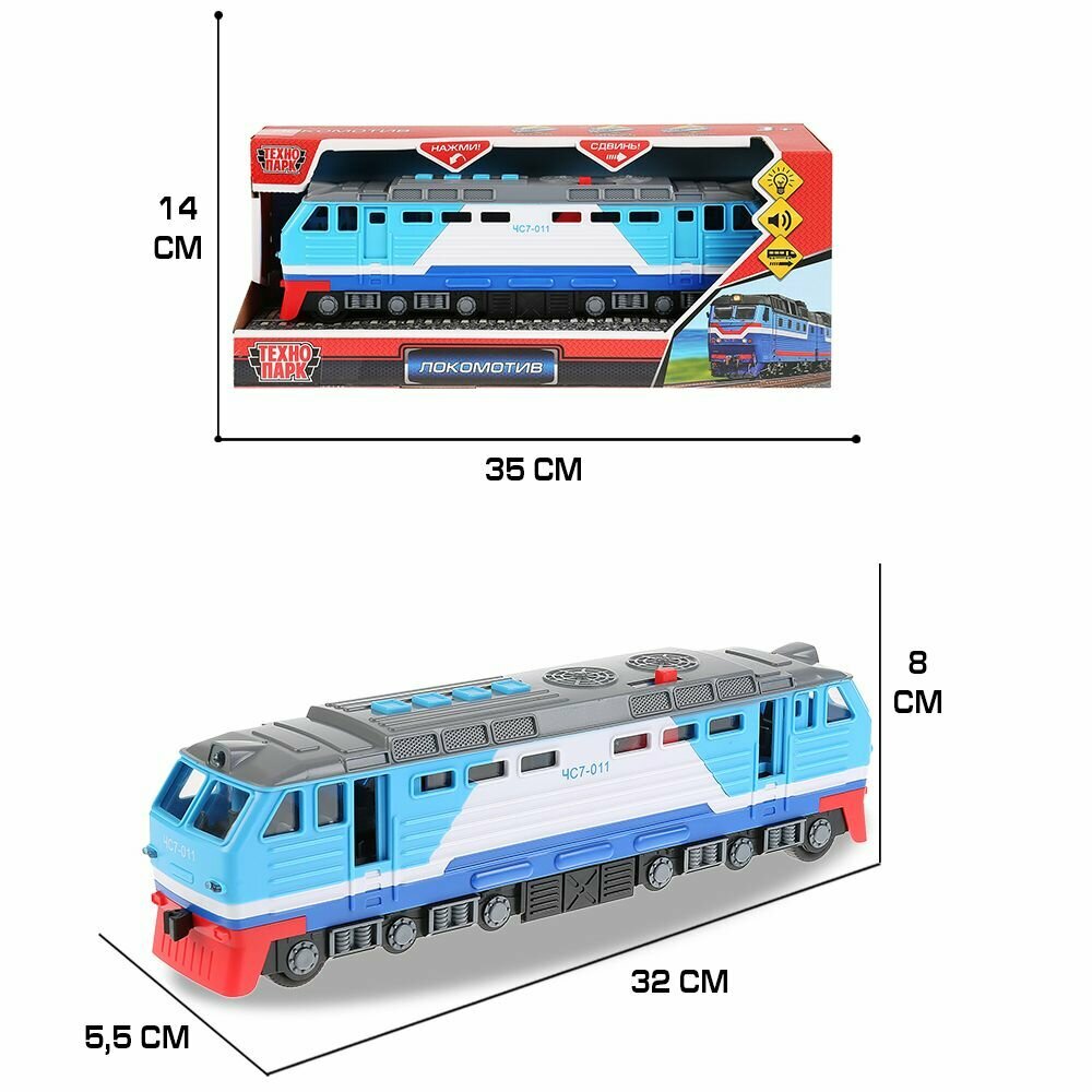 | Комплектация | Машина Локомотив / свет+звук / 30см / Технопарк |