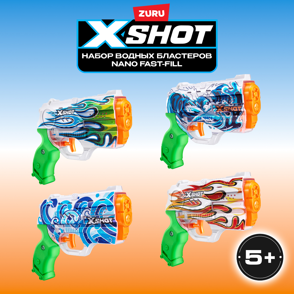 Купить Набор водных бластеров ZURU X-SHOT WATER Fast-Fill Nano Water Blaster / Нано, 4 шт., игрушки для мальчиков, 11857