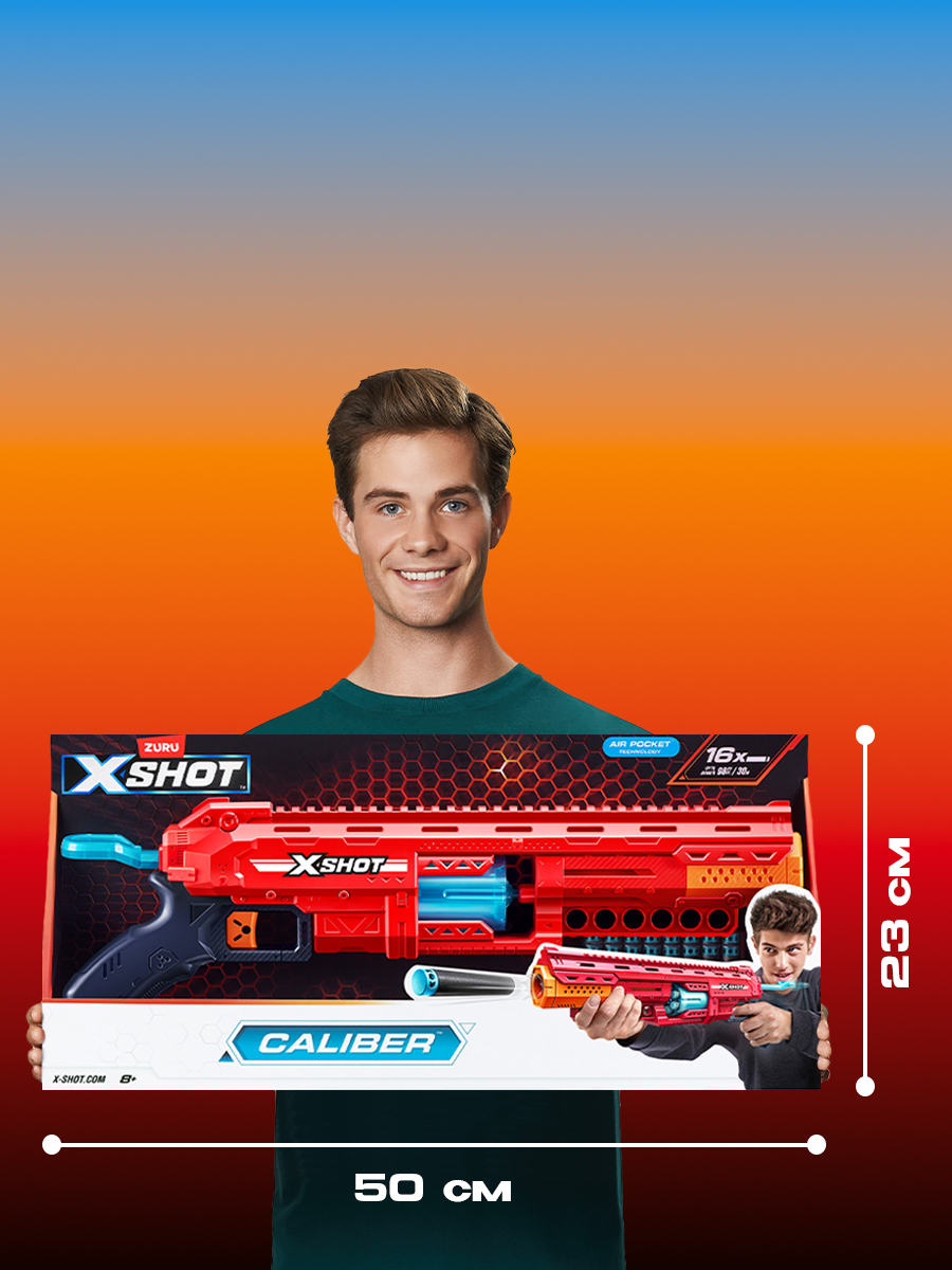 Купить Большой автомат с мягкими пулями (16 шт) ZURU X-SHOT EXCEL CALIBER, 36675 игрушечное оружие, игрушка для мальчика, подходят стрелы нерф, игровой набор