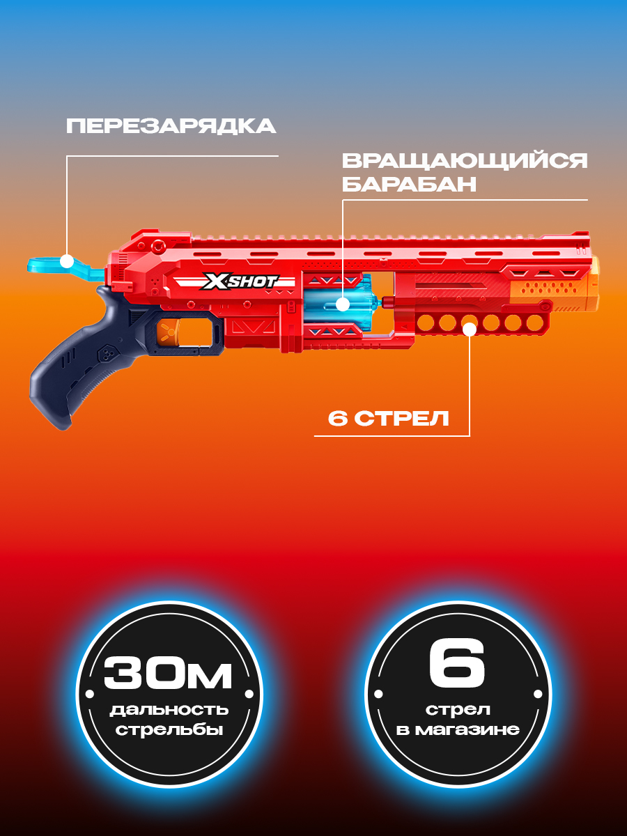 Пистолет с мягкими стрелами (12 шт) ZURU X-SHOT Excel Рефлекс 6, игрушечное оружие, игрушка для мальчика, подходят стрелы нерф, игровой набор, 36433