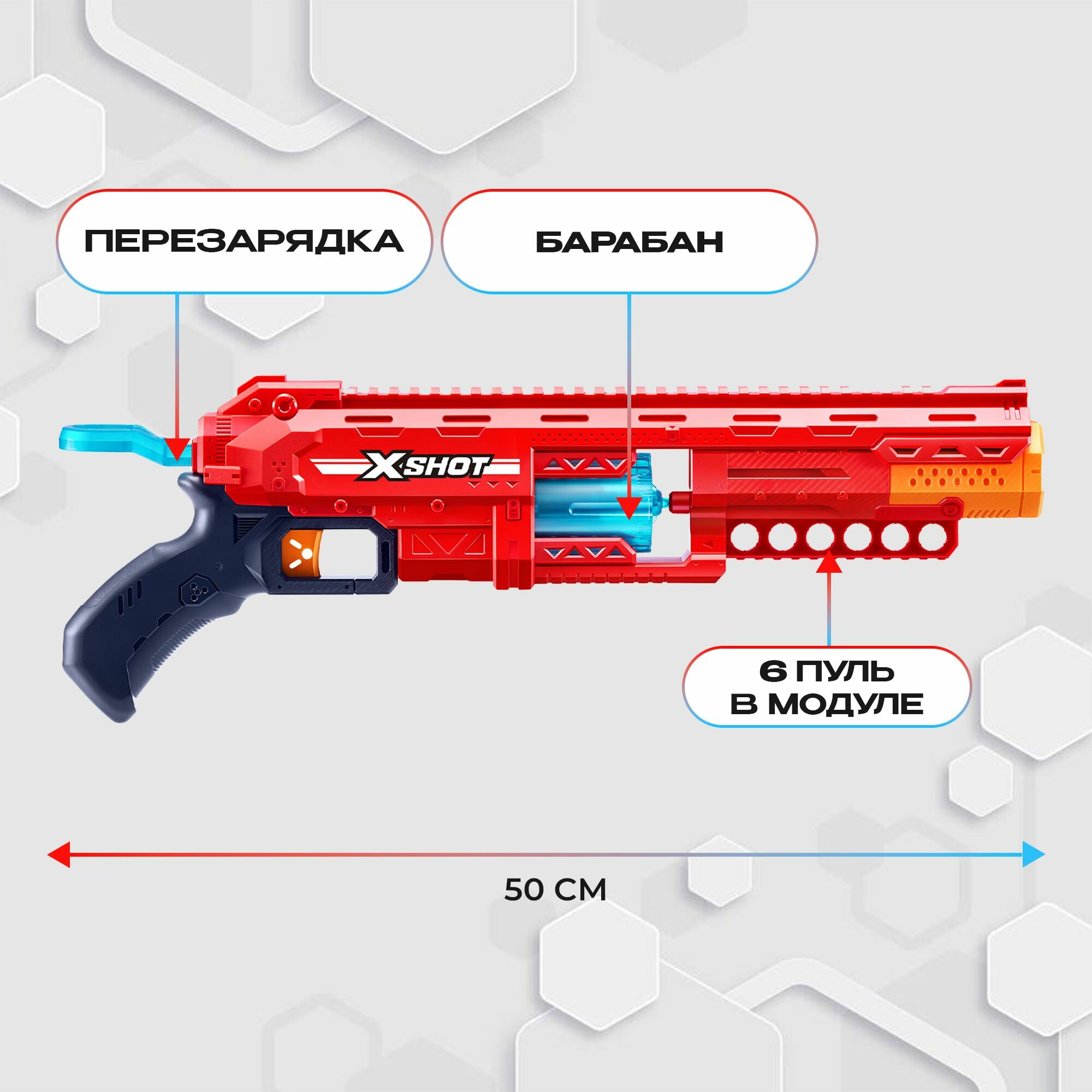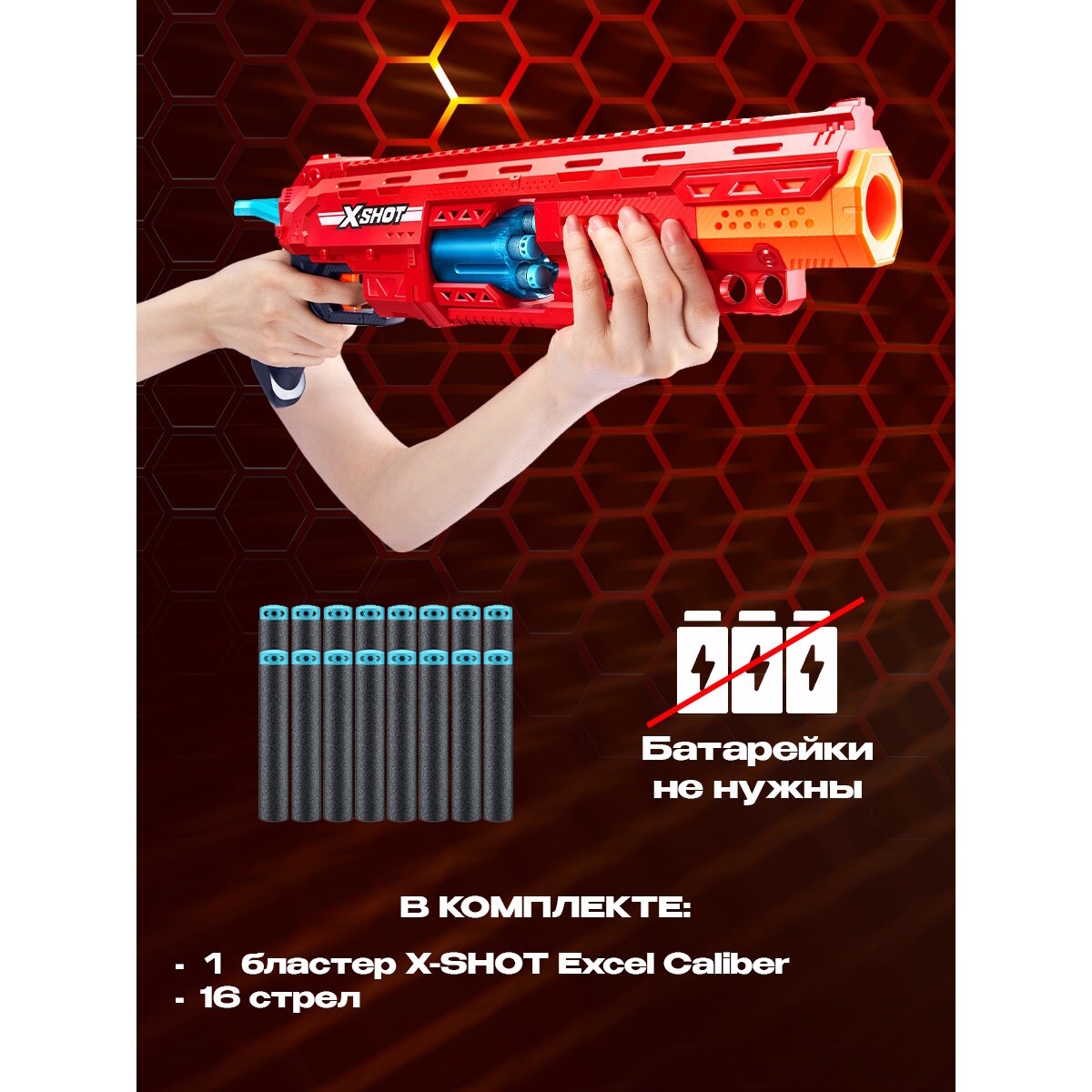 Бластер пистолет Zuru Бластер X-Shot EXCEL CALIBER Красный 50 см / зуру