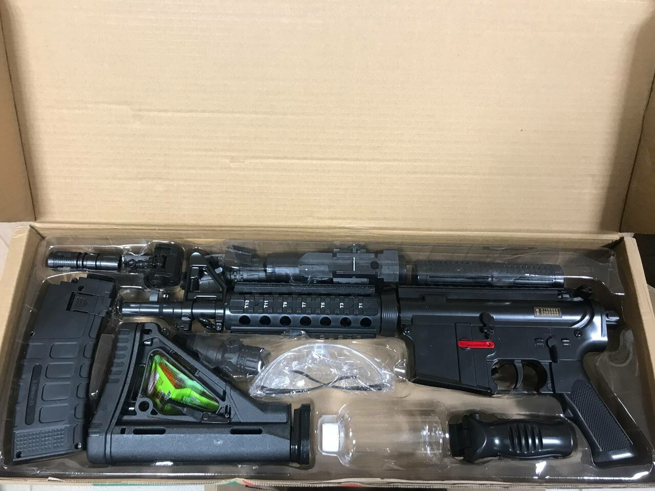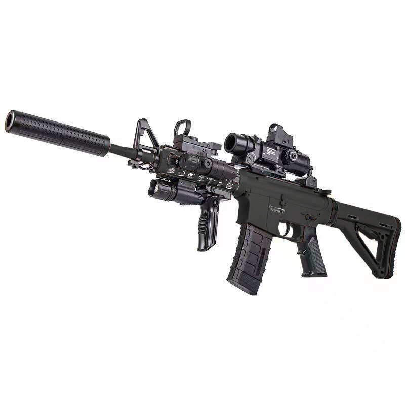 | Комплектация | - автомат; - аккумулятор; - зарядка (USB); - 4000 орбиз шаров, -защитные очки, -фонарик, -лазерный прицел, - глушитель, - прицел стандартный (целик и мушка), - коллиматорный прицел, оптический прицел 15х |