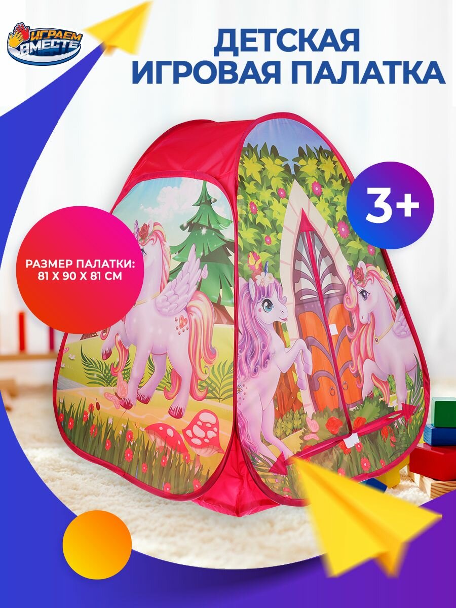 Играем вместе. Палатка "Единороги" детская игровая в сумке 81х90х81 см