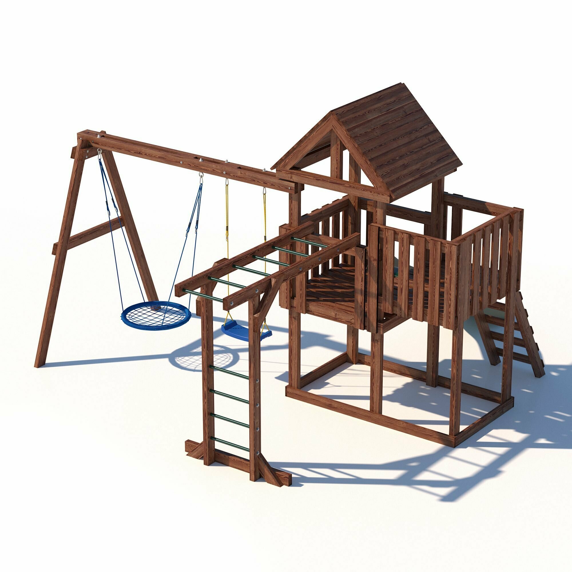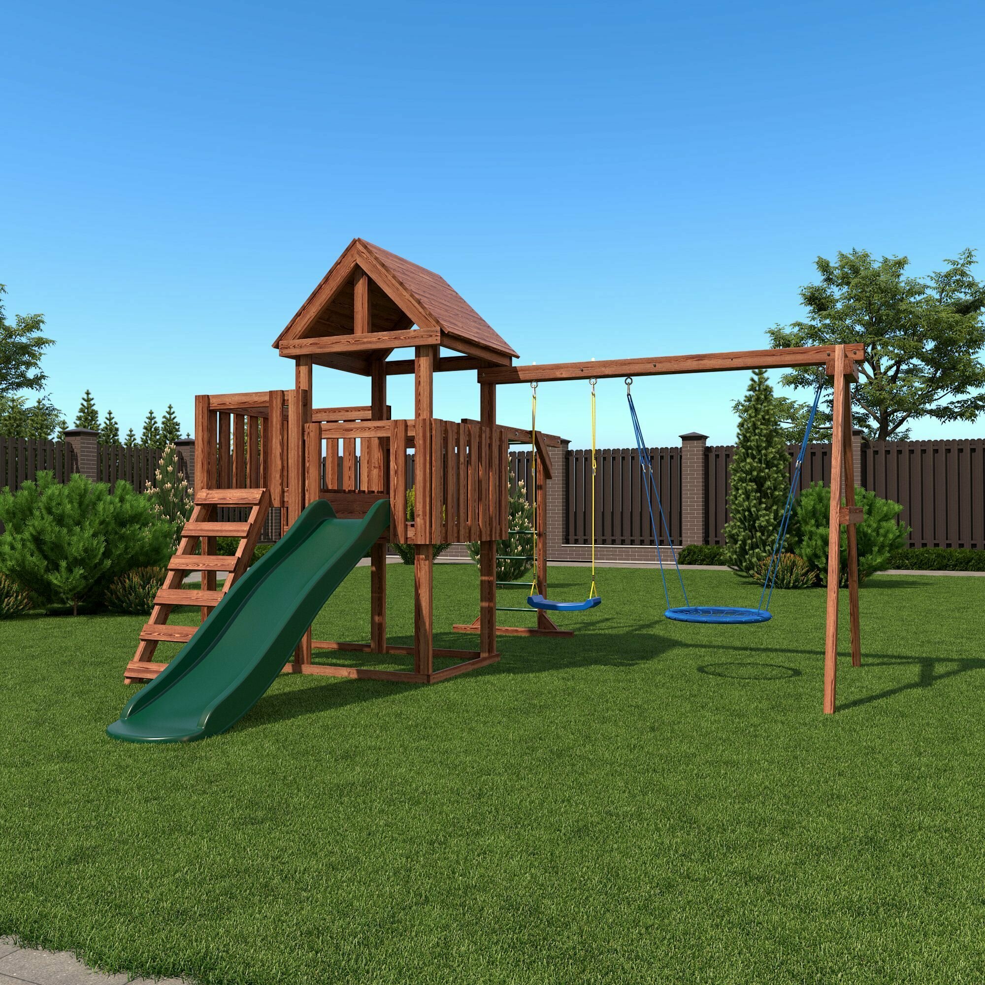 Купить Детская деревянная игровая площадка для улицы дачи CustWood Junior Color JC5 с деревянной крышей