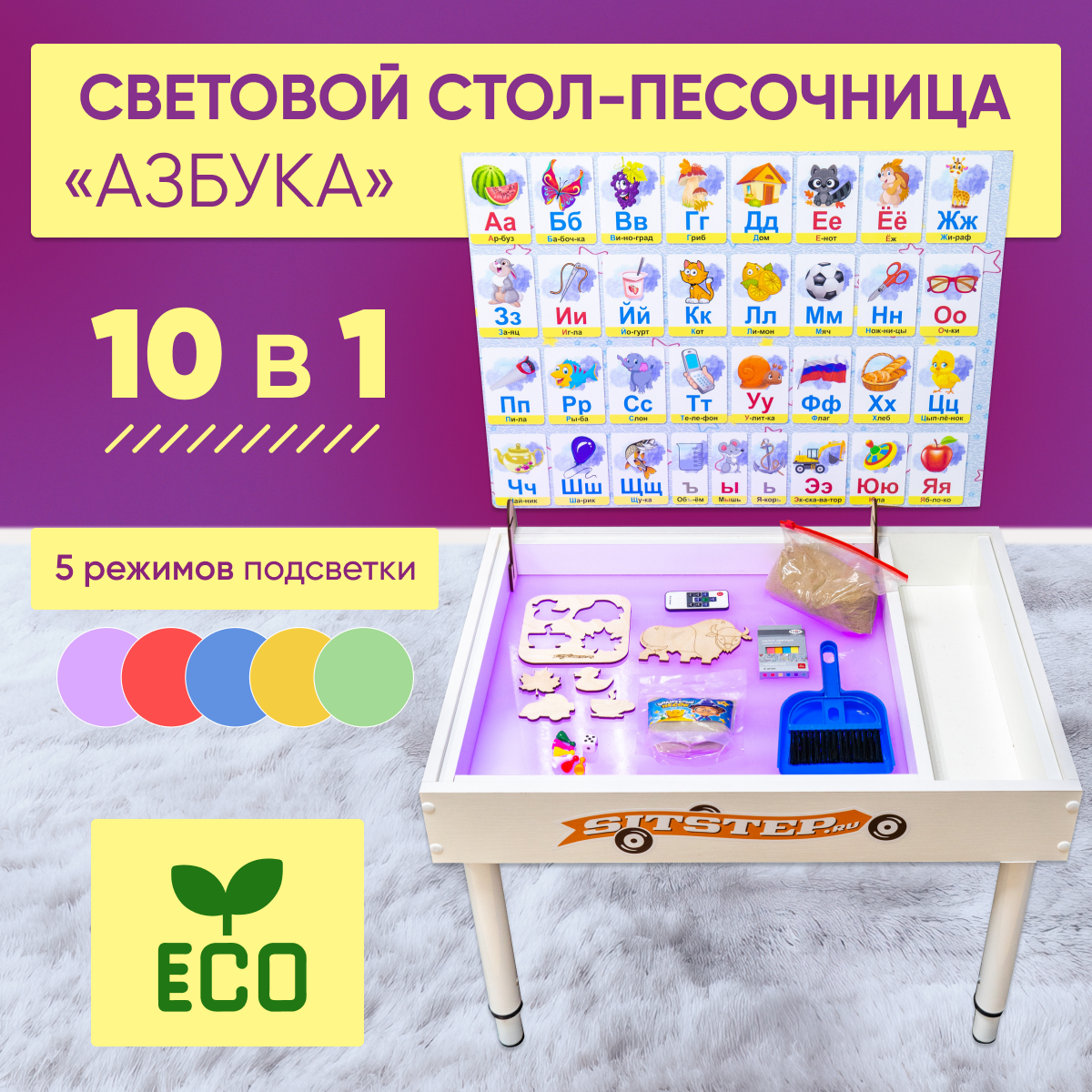 Купить Световой стол для рисования песком Sitstep "Алфавит", развивающий центр 10 в 1