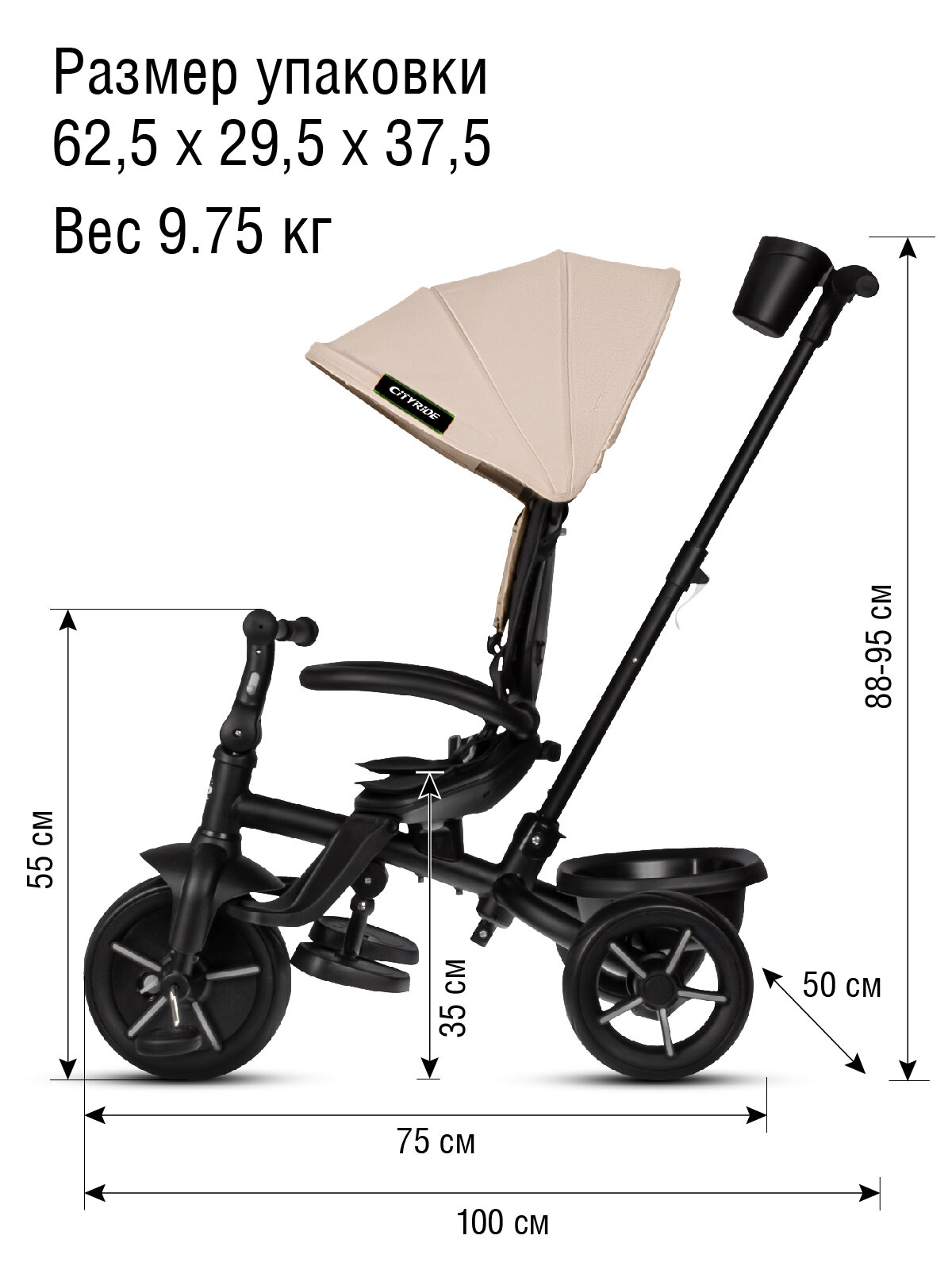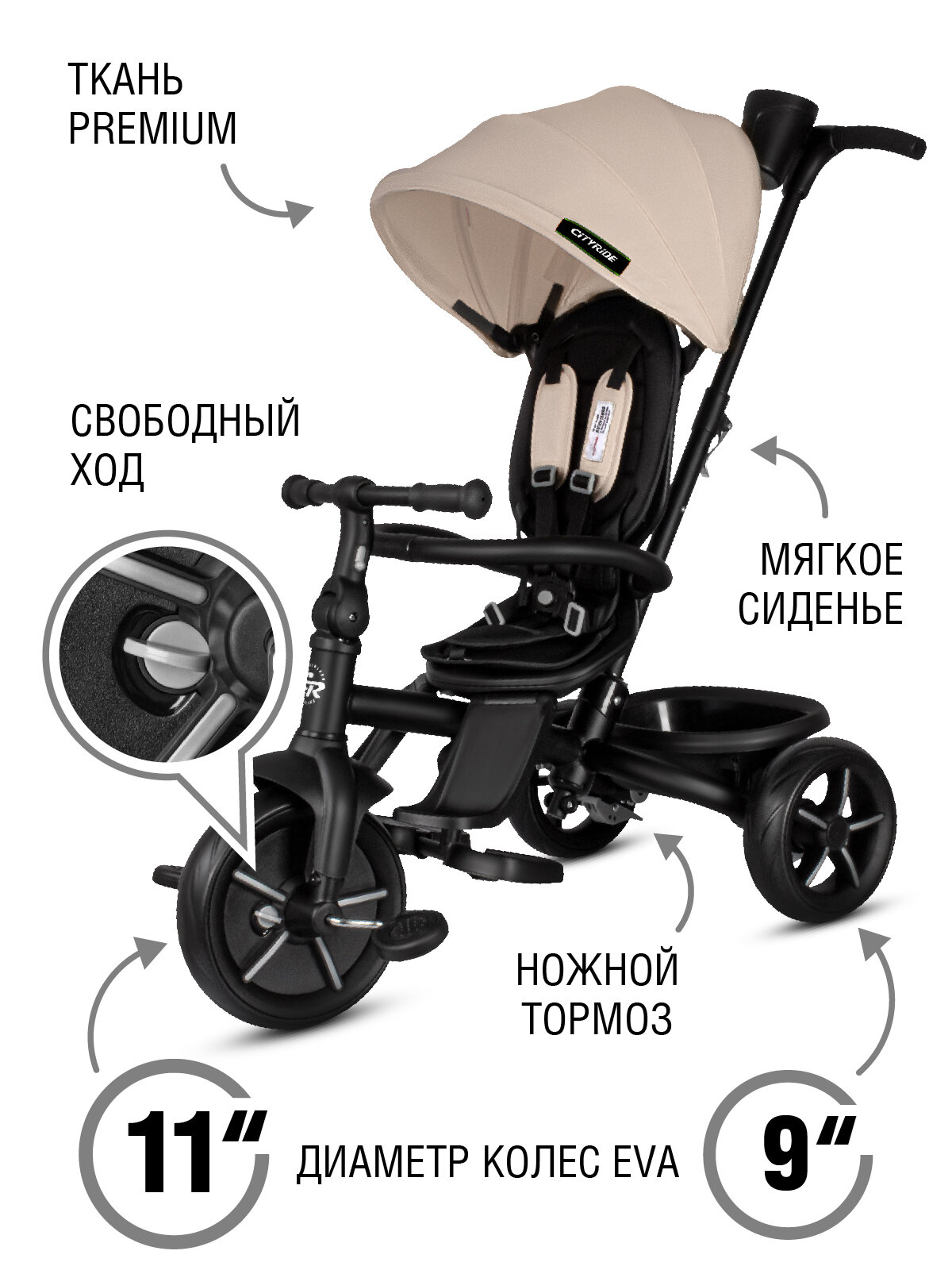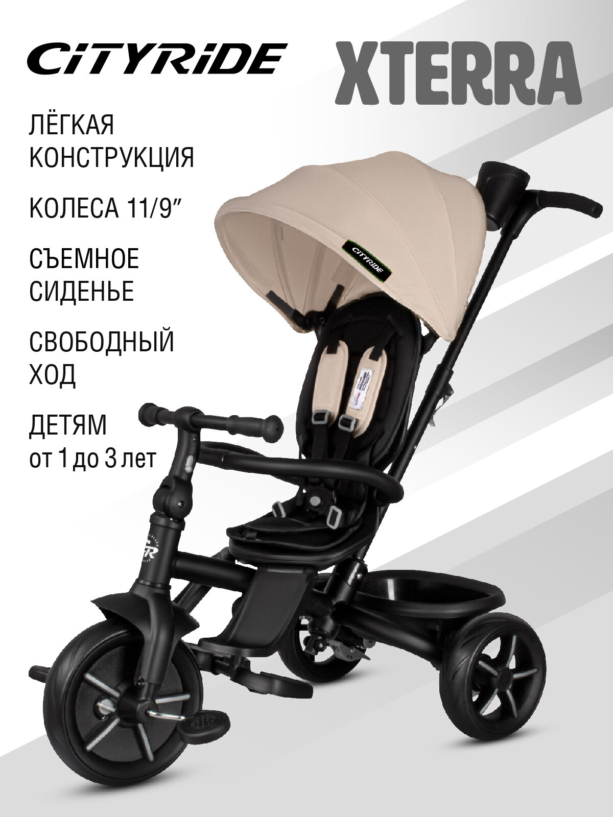 Велосипед детский трехколесный ТМ CITYRIDE XTERRA, складная крыша, колеса EVA 11"/9", поворотное сиденье 360◦, CR-B3-12WT