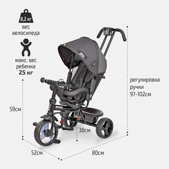 Трехколесный велосипед Werter Berger PREMIUM XG7341-T16ZC черный интересное:
