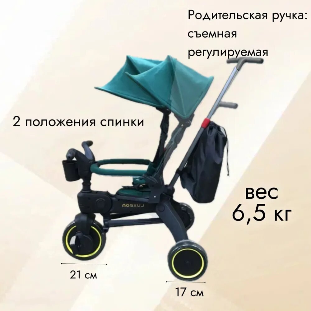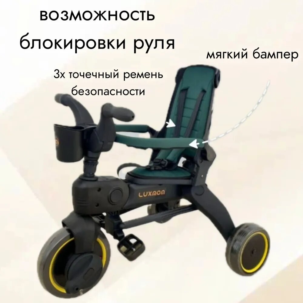 Велосипед детский трехколесный Luxmom S7 зеленый интересное: