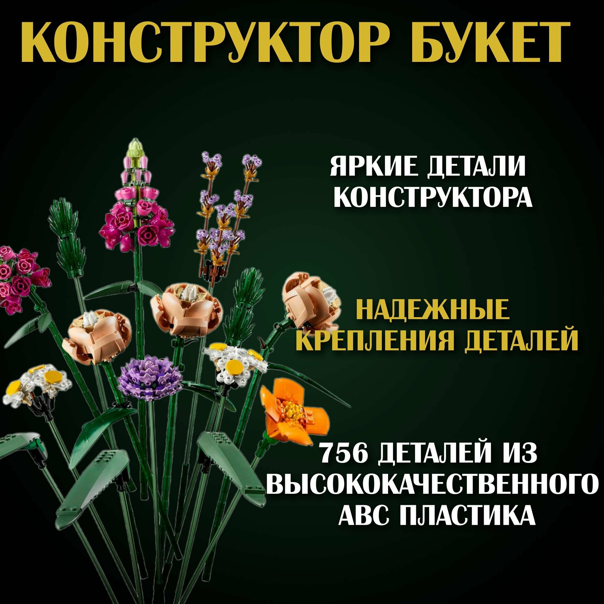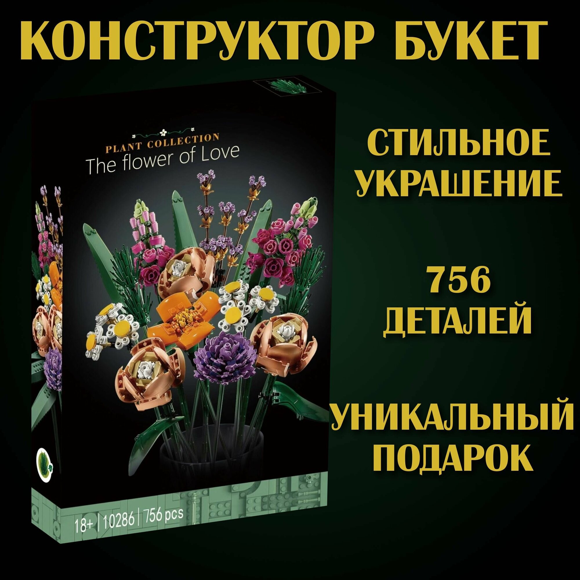 Купить Конструктор Lion King Букет цветов 756 деталей / для детей и взрослых / подарок