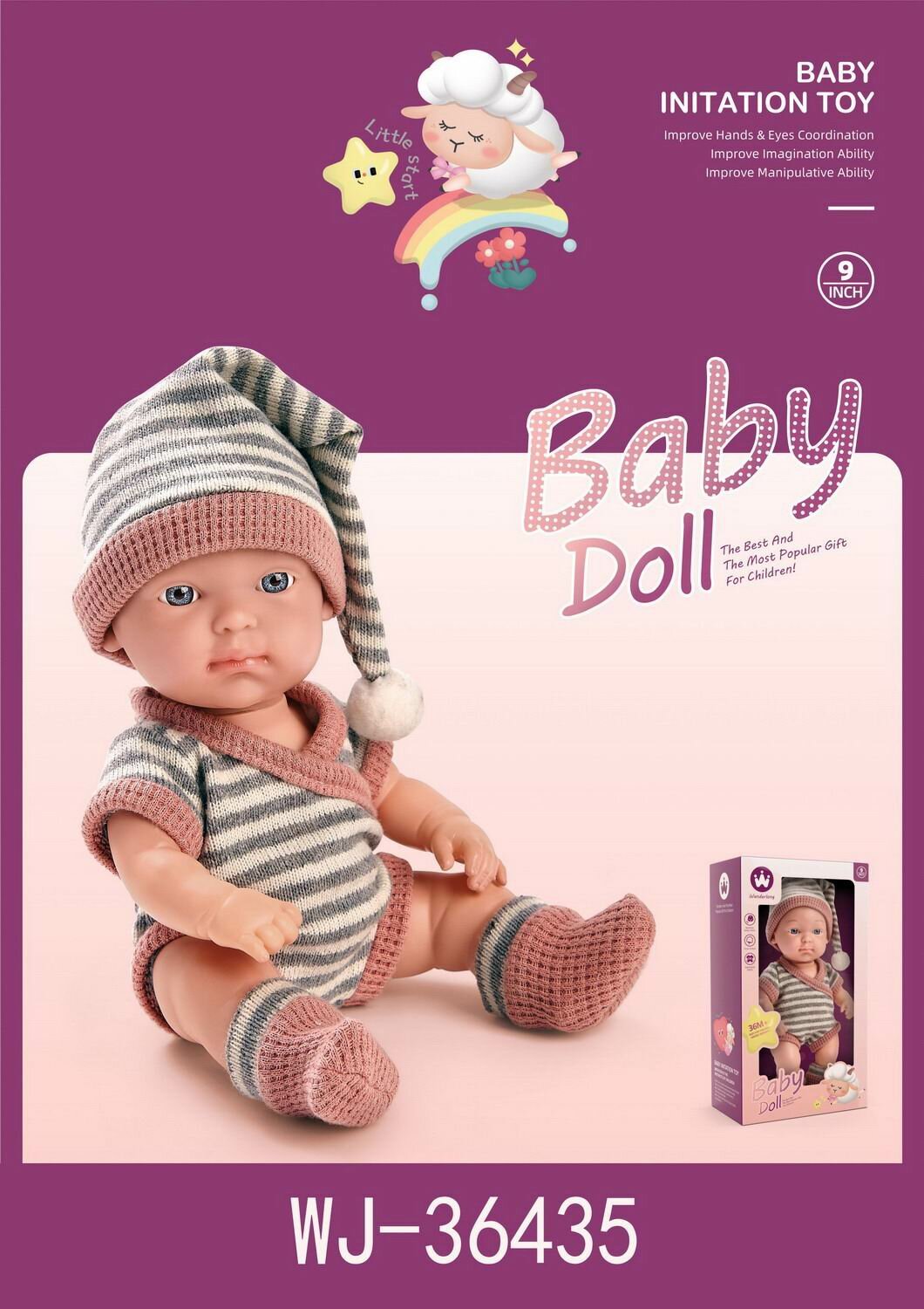Пупс Junfa 23 см в полосатых боди, носочках, шапочке-колпаке WJ-36435
