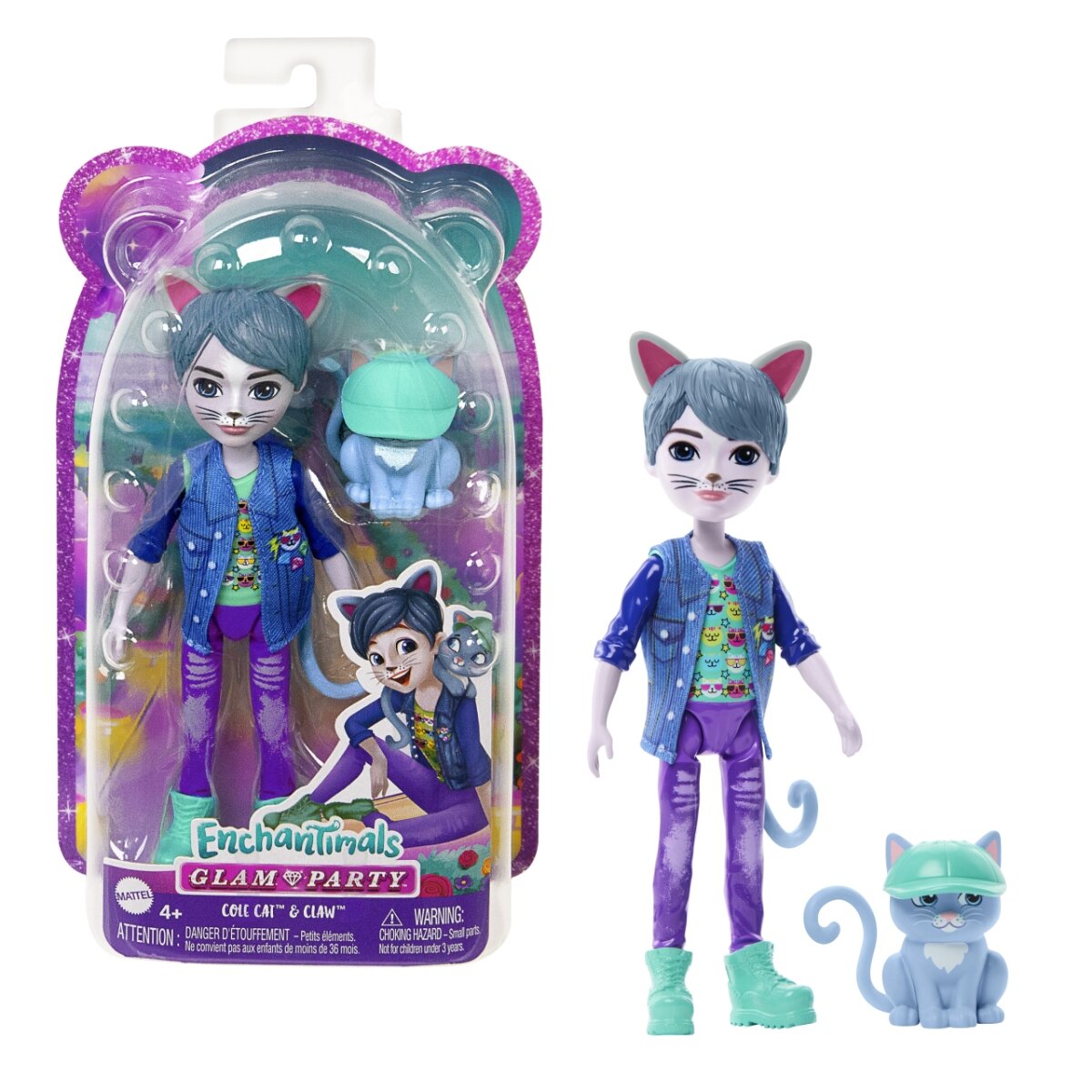 Купить Кукла Mattel Enchantimals Glam Party Кот Коул Кэт с питомцем HNT59 / Энчантималс Гламурная вечеринка