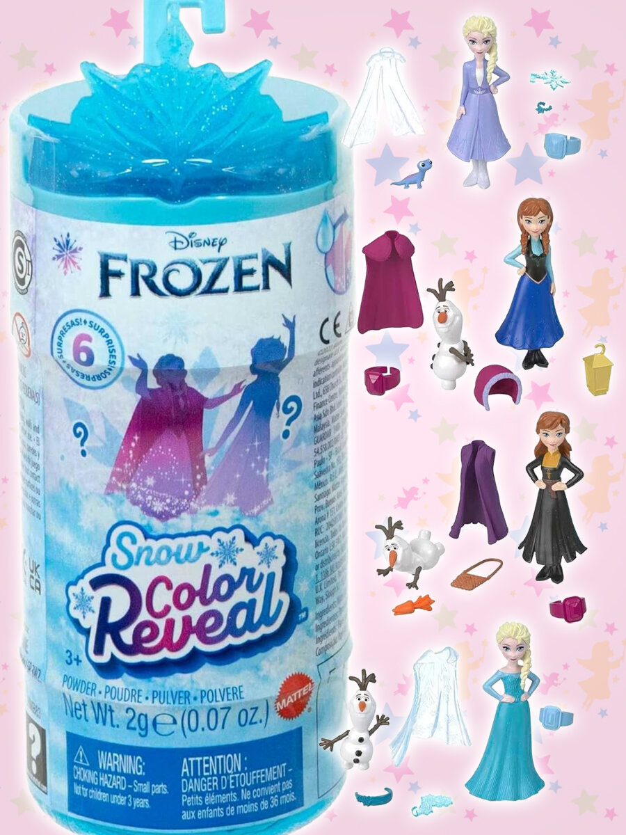 Кукла-сюрприз Mattel Disney Frozen Snow Color Reveal, 10 см, HMB83 интересное: