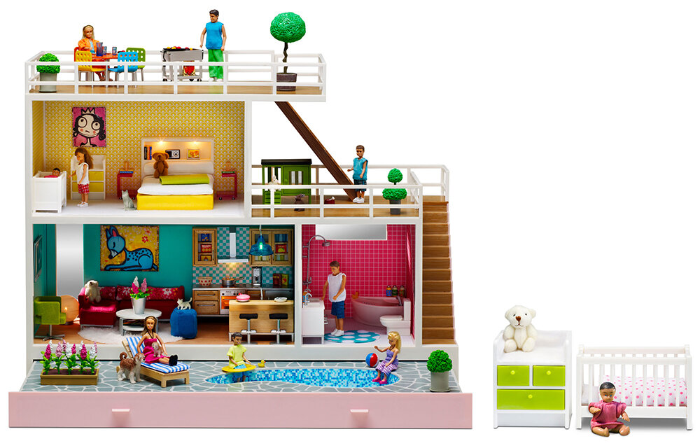 Купить Стокгольм Кукольный домик с выдвигающимся бассейном с подключением света