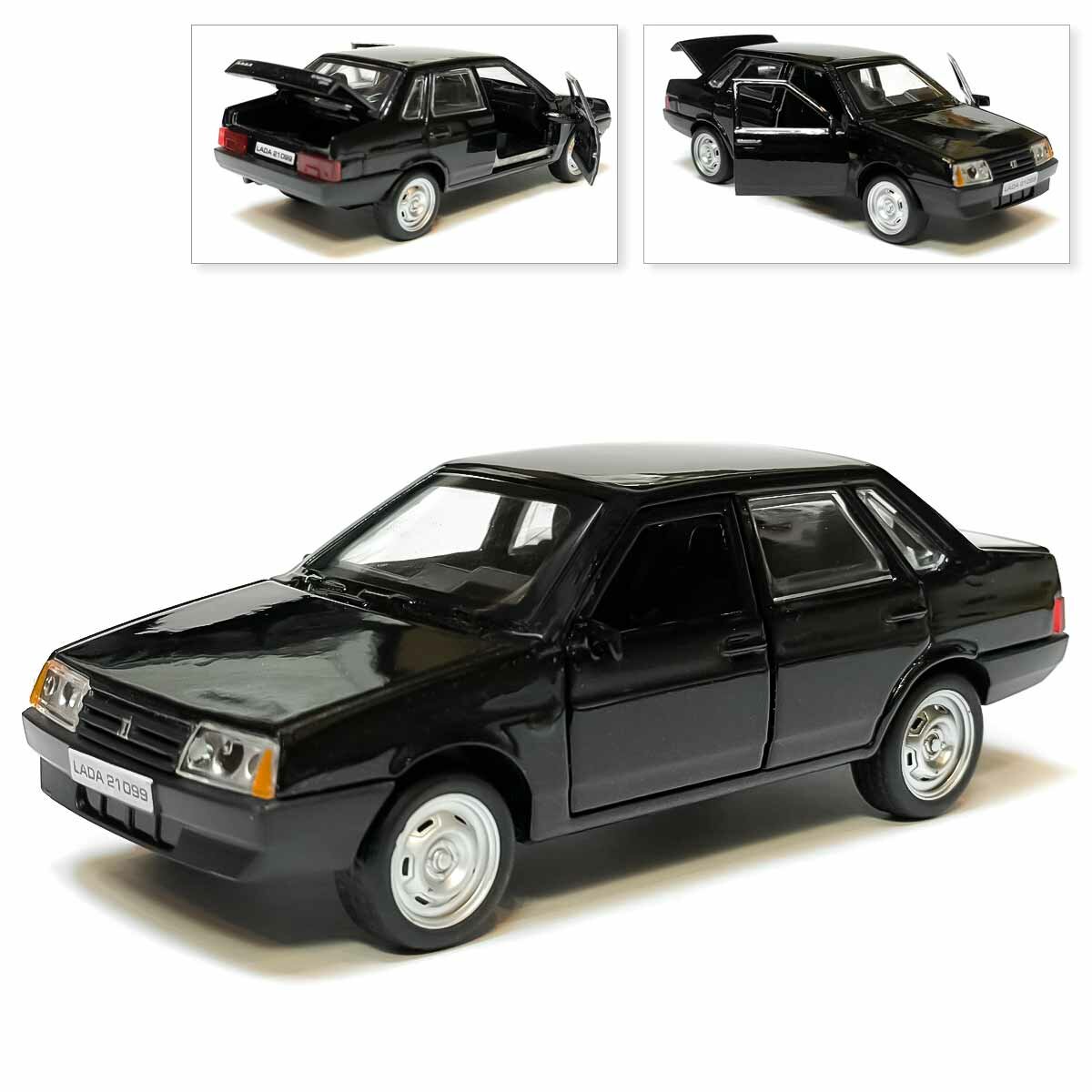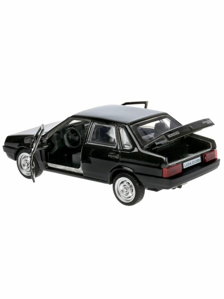 Машинка детская Лада ВАЗ 21099 Спутник 12 см, Технопарк, черная, открываются двери и багажник, металлическая