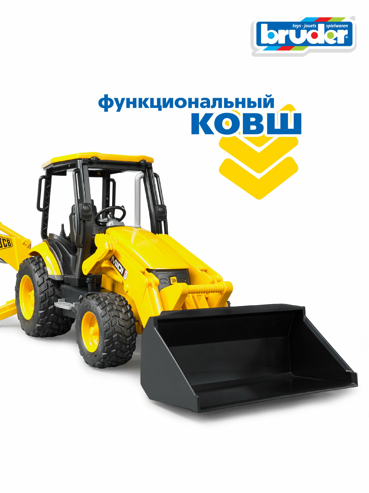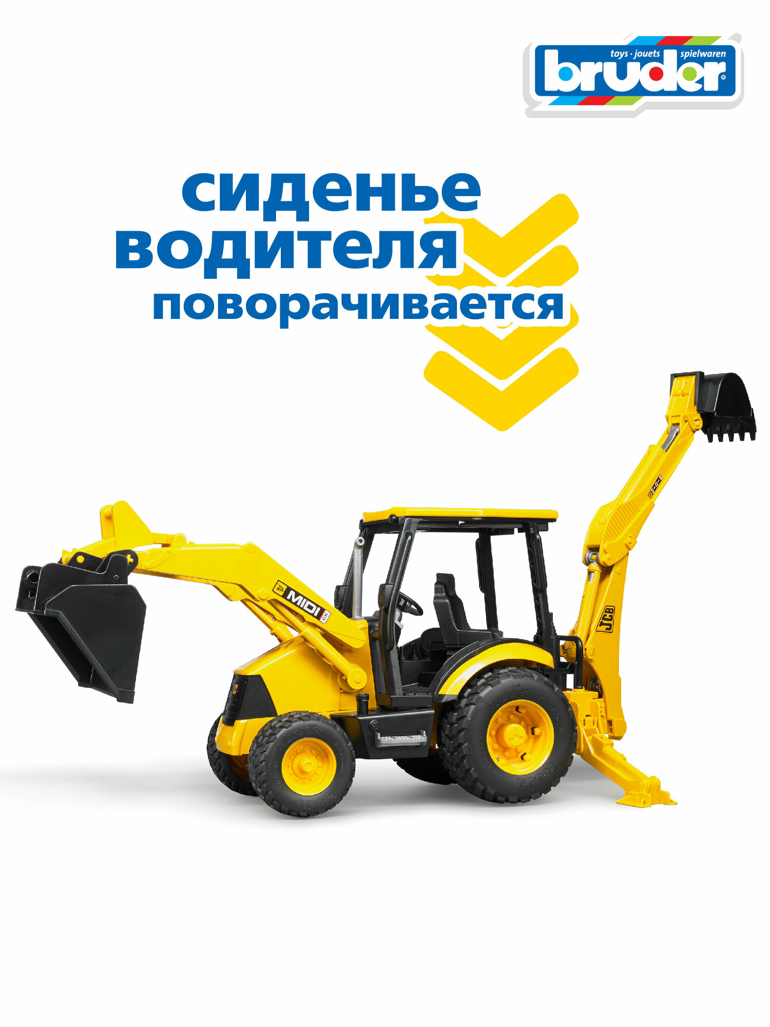 Масштабная модель Bruder 02-427 Экскаватор погрузчик колёсный JCB Midi CX . интересное: