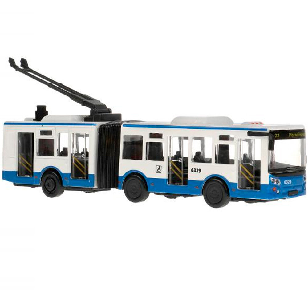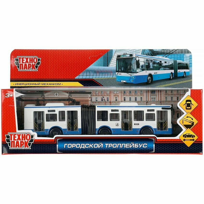 Купить Машинка игрушка детская для мальчика Городской троллейбус Технопарк модель металлическая коллекционная инерционная с открывающимися дверьми 19 см