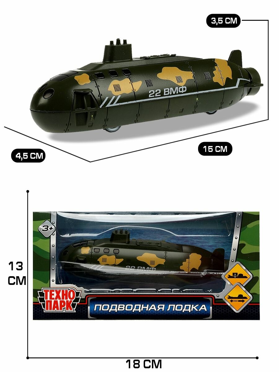 Модель Подводная лодка 15 см металл инерция Технопарк 2106C420-R
